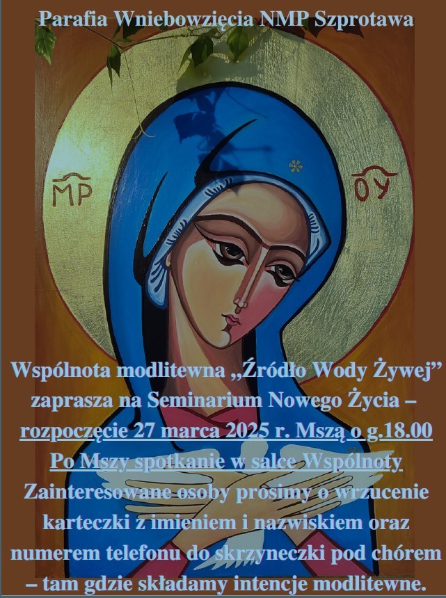 Wspólnota Źródło Wody Żywej zaprasza na Seminaria Nowego Życia. Rozpoczęcie w piątek 27 marca 2026 roku po Mszy Świętej wieczornej