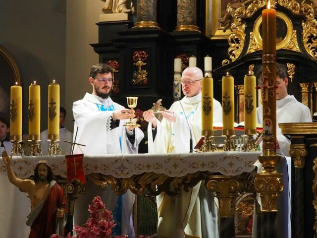 W sobotę 3 maja obchodziliśmy uroczystość NMP Królowej Polski, głównej patronki naszej ojczyzny. To także kolejna rocznica uchwalenia Konstytucji 3 Maja. Msze św. były odprawiane o godz. 7:00, 8:30 i 10:00 i 18:00, a Msza św. w intencji ojczyzny została odprawiona o godz. 10:00 podczas, której wspólną modlitwą, wstawialiśmy się u Królowej Polski, aby wypraszać Bożą Opiekę i potrzebne łaski dla naszego narodu. Eucharystię celebrowali: ks. Krzysztof i główny celebrans ks. Jakub. Okolicznościowe kazanie wygłosił ks. Krzysztof (można je wysłuchać poniżej).