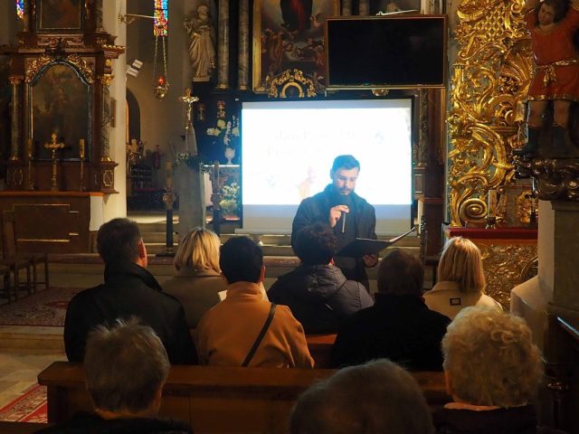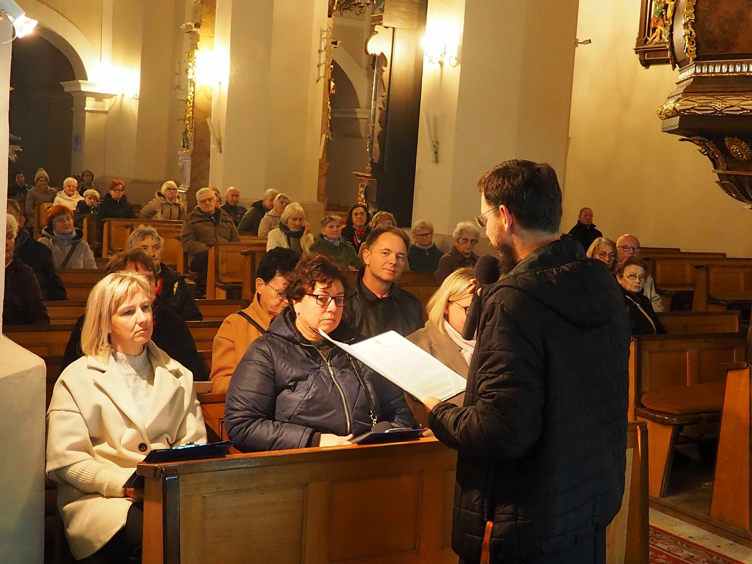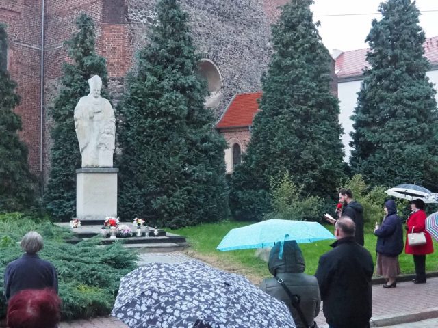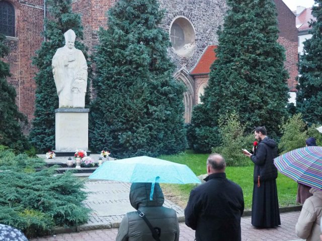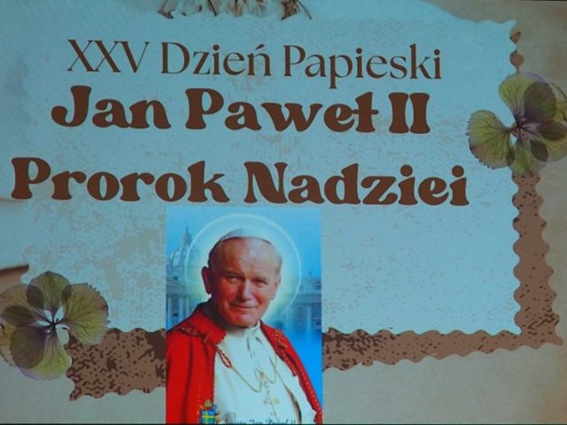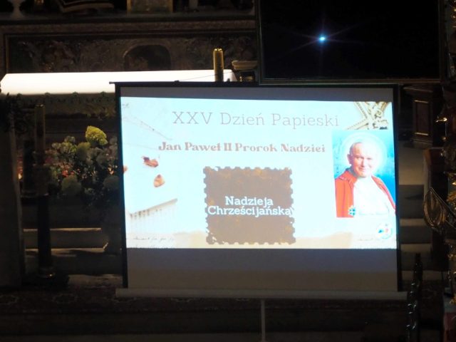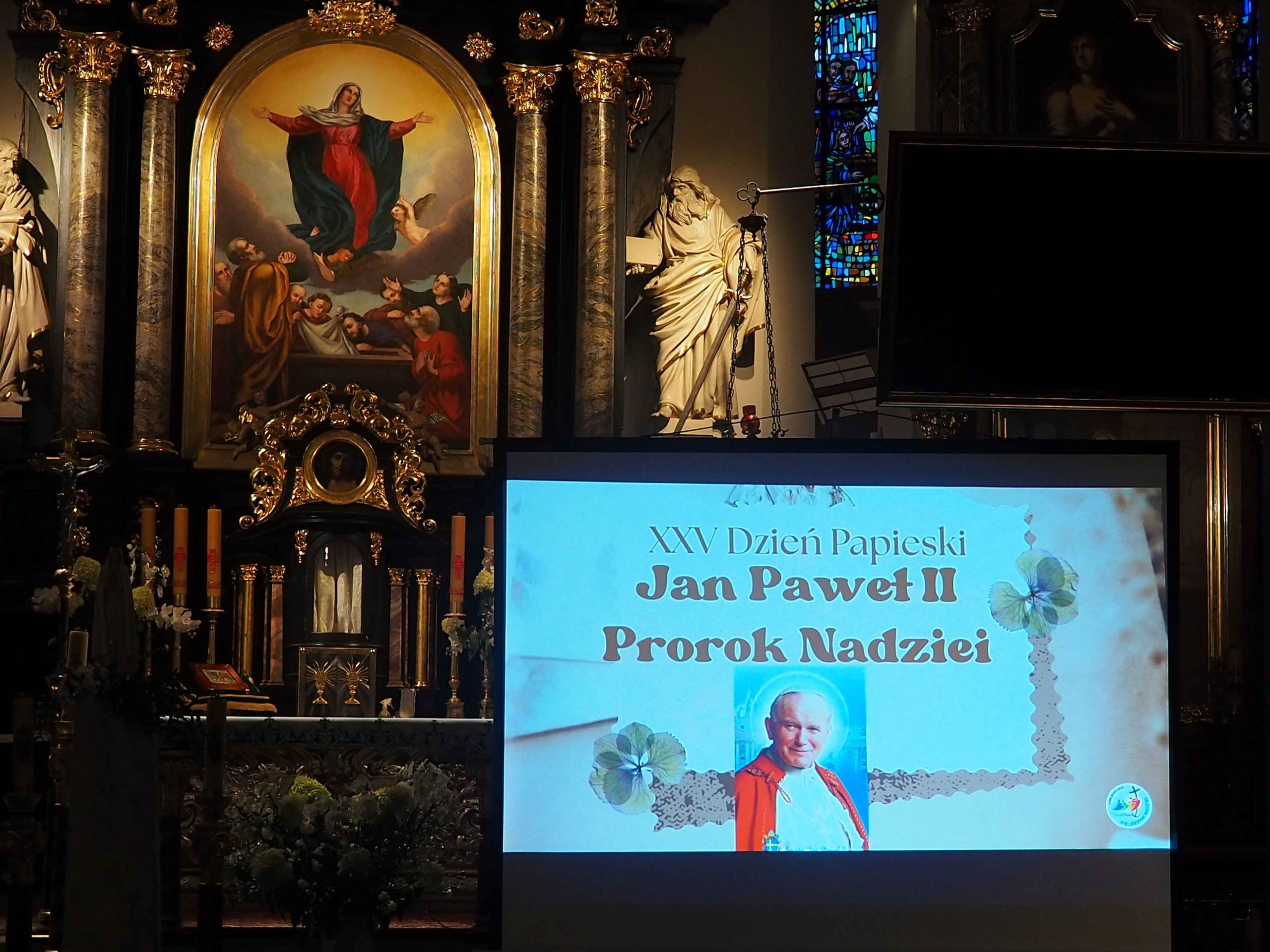 12 października 2025 roku odbył się kolejny Dzień Papieski, który obchodziliśmy pod hasłem „ŚW. JAN PAWEŁ II: PROROK NADZIEI ”. W naszym farnym kościele odbyło się modlitewne spotkanie o godz. 17:00. Modlitewne rozważania prowadzone były przez ks. Krzysztofa wraz z liderami grup: Źródło Wody Żywej, Apostolat Zbawczego Cierpienia, Oddanie 33 oraz Grupa Biblijna. Rozważania zaczerpnięte były z nauki św. Jana Pawła II, Benedykta XVI, Franciszka oraz Leona XIV. Na zakończenie wszyscy przeszli przed pomnik Jana Pawła II gdzie ks. Krzysztof prowadził Litanię do patrona dnia oraz udzielił błogosławieństwa. Oprawę muzyczną zapewnił organista Marcin Bojski (organy, śpiew) wraz z Rafałem Luzarowskim (śpiew).