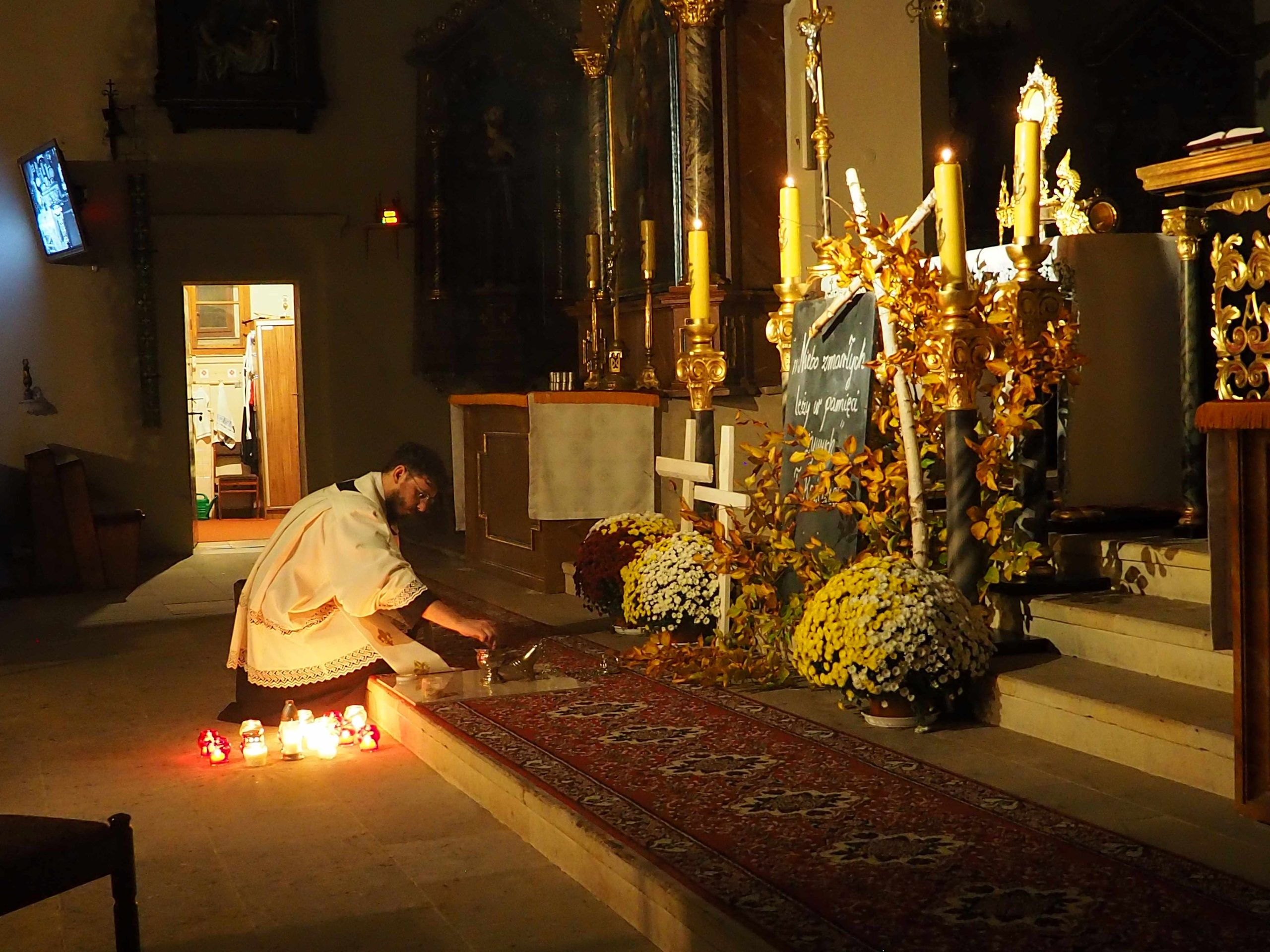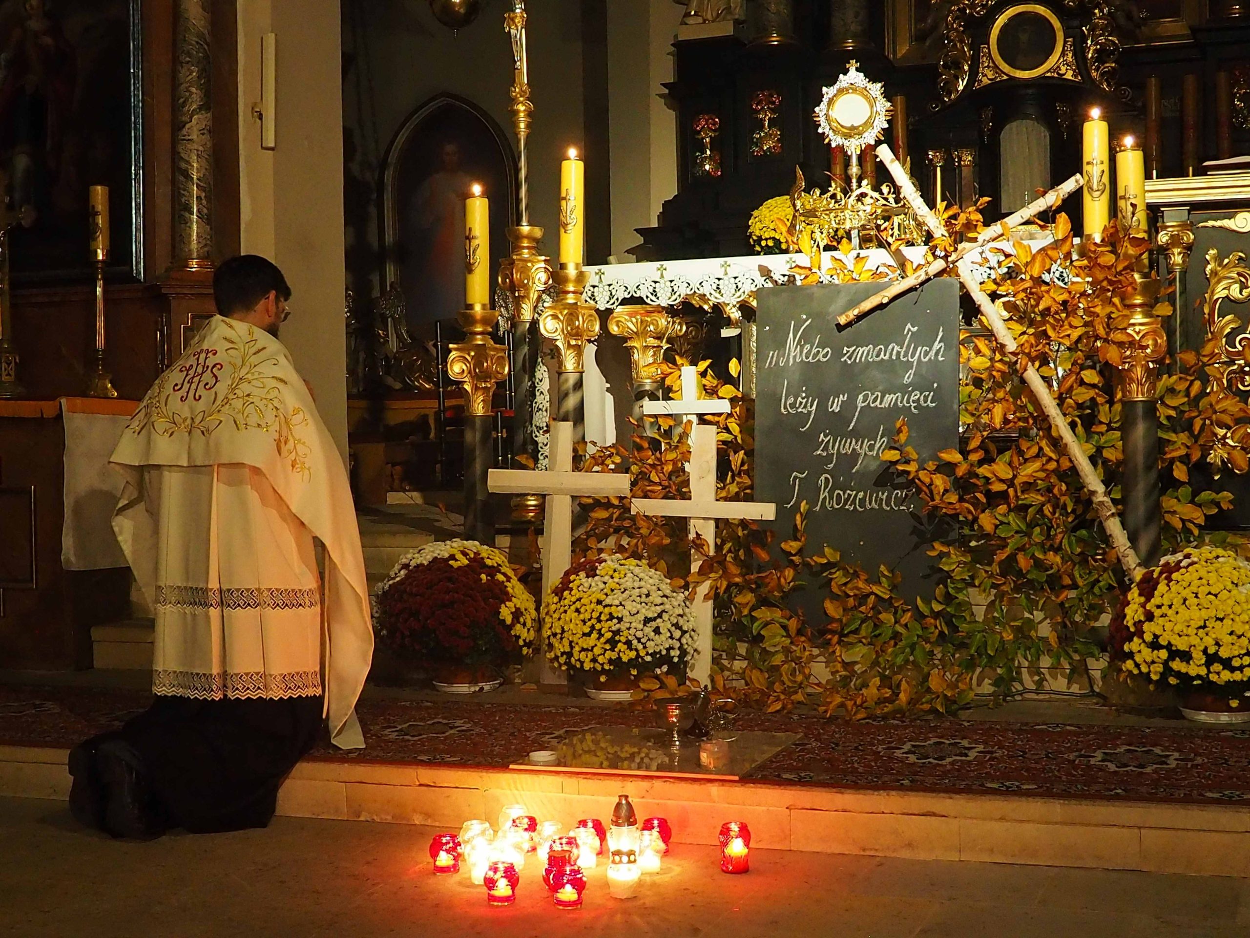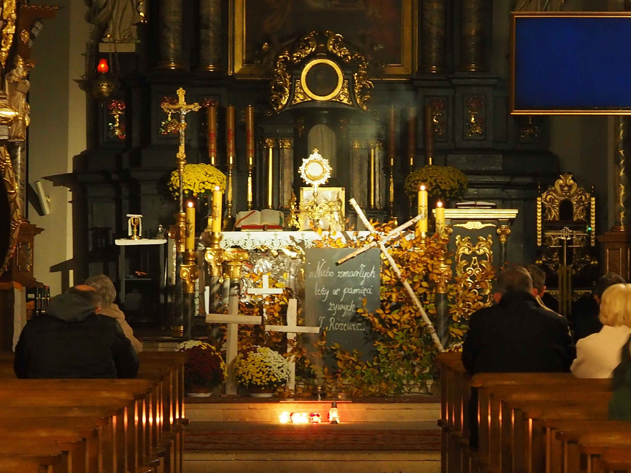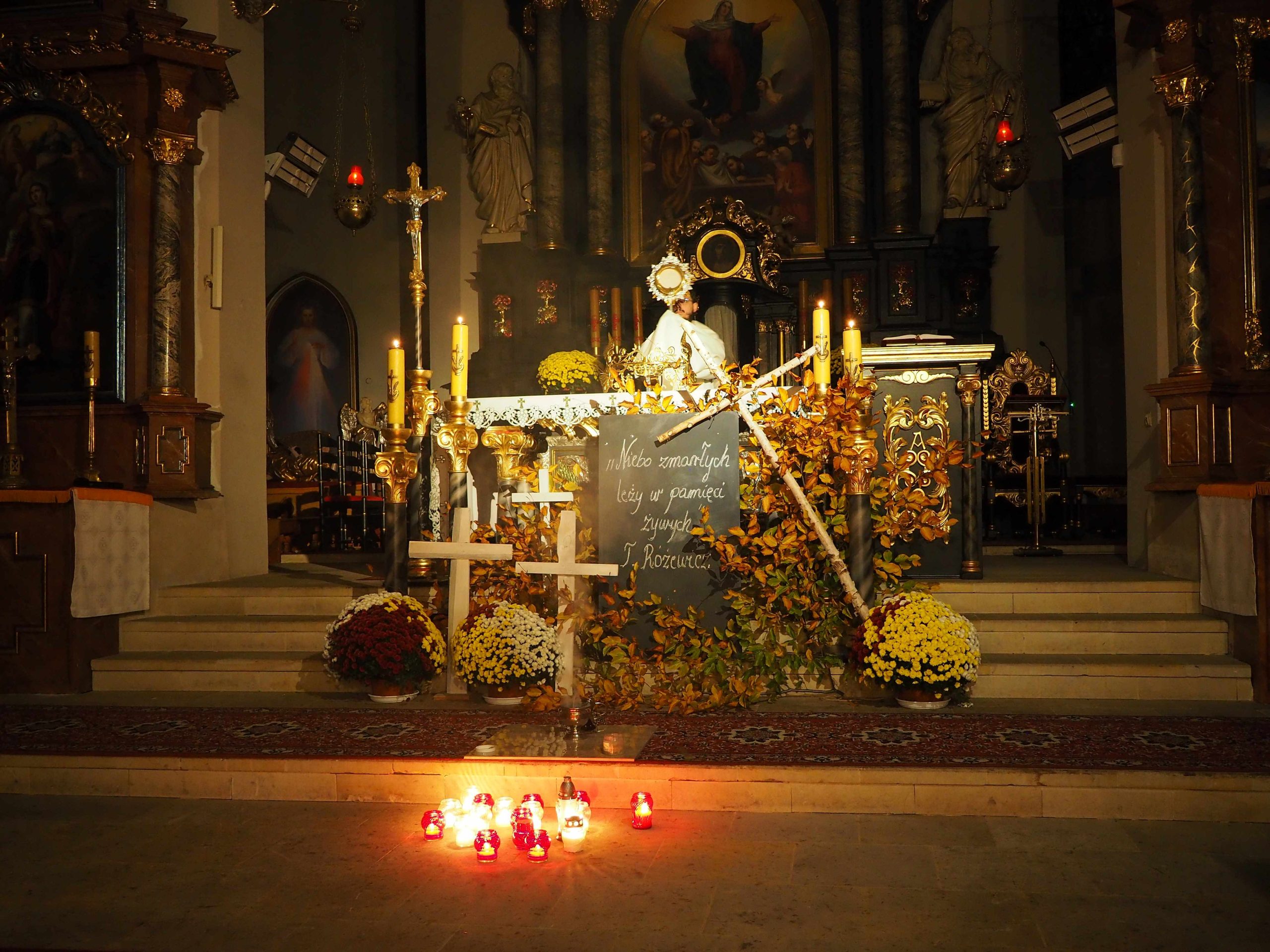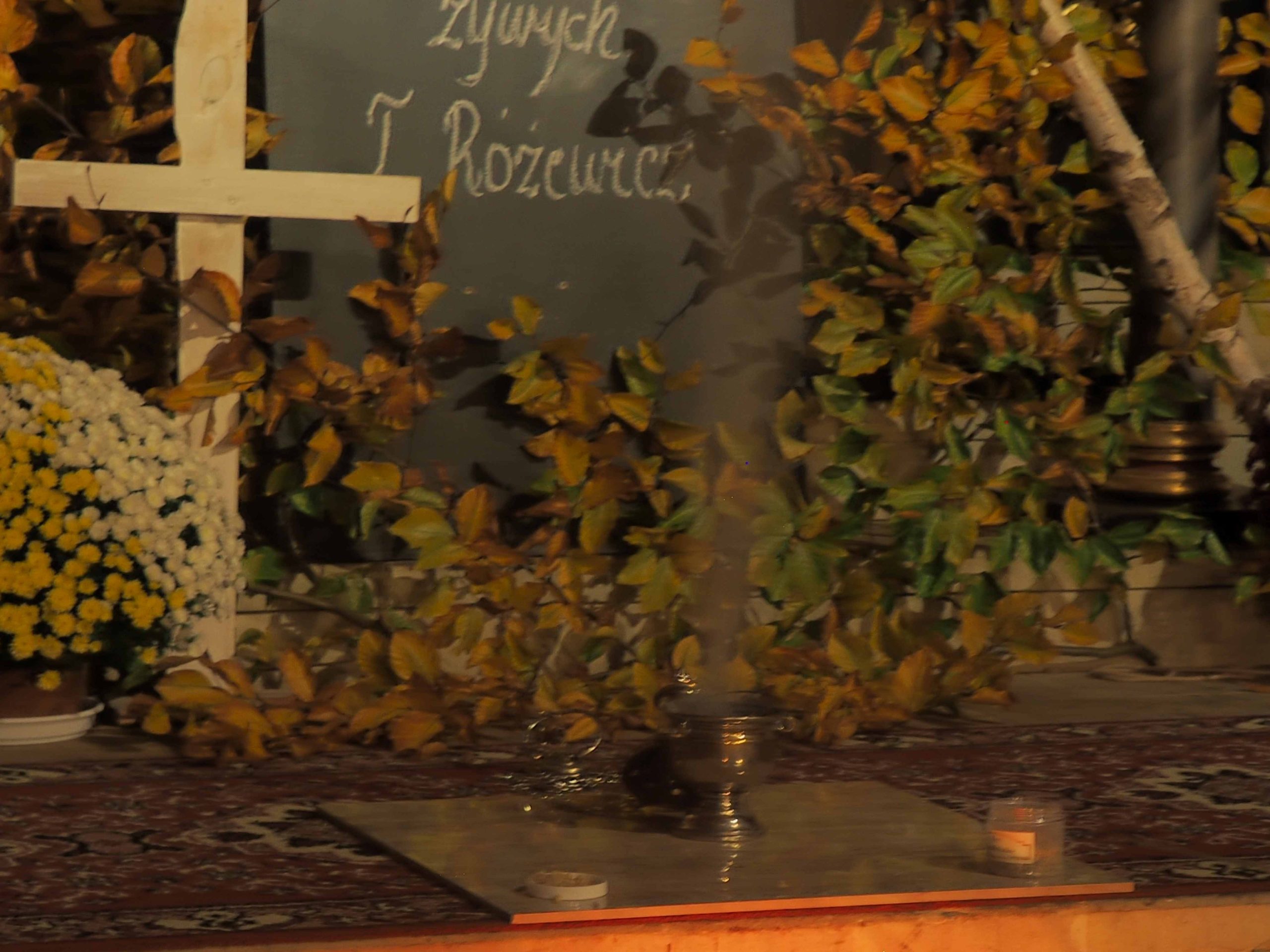 31 października 2025 roku od godz. 21:30 przeżywaliśmy NOC ŚWIATŁA przed uroczystością Wszystkich Świętych. Spotkanie modlitewne rozpoczęło się odśpiewaniem Apelu Jasnogórskiego. Następnie ks. Krzysztof powitał wszystkich jednocześnie zawiązując wspólnotę wiernych zgromadzonych na modlitwie. Potem członkowie wspólnoty Źródła Wody Żywej prowadzili modlitwę uwielbienia z zaproszeniem naszych świętych patronów. Odśpiewana została Litania do Wszystkich Świętych. Po wygłoszonym komentarzu dotyczącym symboliki światła i kadzidła został wystawiony Najświętszy Sakrament. Nastąpiła wtedy modlitwa uwielbienia z jednoczesnym indywidualnym zaniesieniem żywego światła (znicza) i dosypywaniem ziaren kadziła przez wiernych przed Najświętszy Sakrament. Zwieńczeniem Nocy Światła była Eucharystia celebrowana przez ks. Krzysztofa.