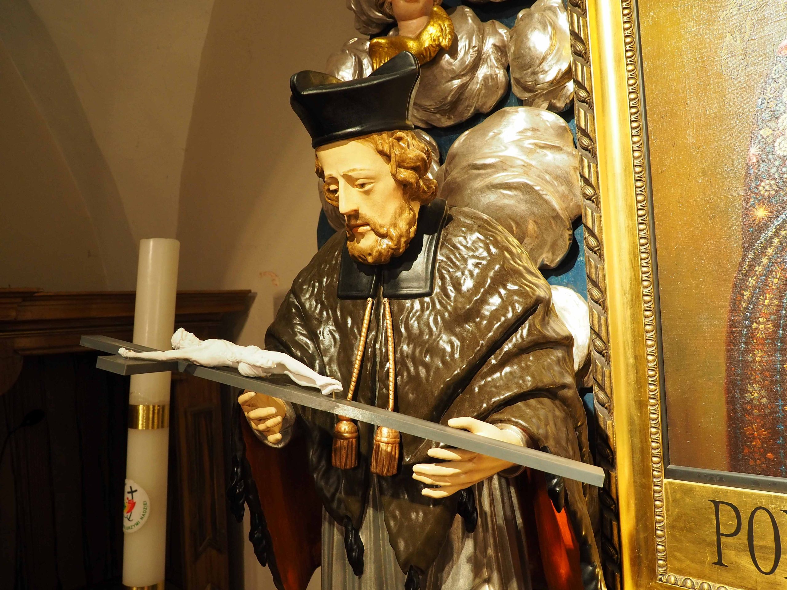 5 listopada 2025 roku została przywieziona figura św. Jana Nepomucena, która docelowo będzie umieszczona w niszy nad głównym wejściem. Będzie stała zamiast oryginalnej drewnianej, która pozostanie w kościele. Nowa figura jest kopią oryginału zrekonstruowana do pierwotnego wyglądu – powrócił krzyż trzymany w dłoniach, zostały uzupełnione liczne ubytki, a także powróciły kolory, które zostały odkryte podczas renowacji. Kopia wykonana jest w technice druku 3D w pracowni konserwatorskiej w Toruniu. Zanim zostanie postawiona w niszy nad wejściem musi być wykonane jeszcze zadaszenie, aby ochronić figurę przed szkodliwymi warunkami atmosferycznymi. Obecnie stoi w kaplicy Matki Bożej Częstochowskiej.