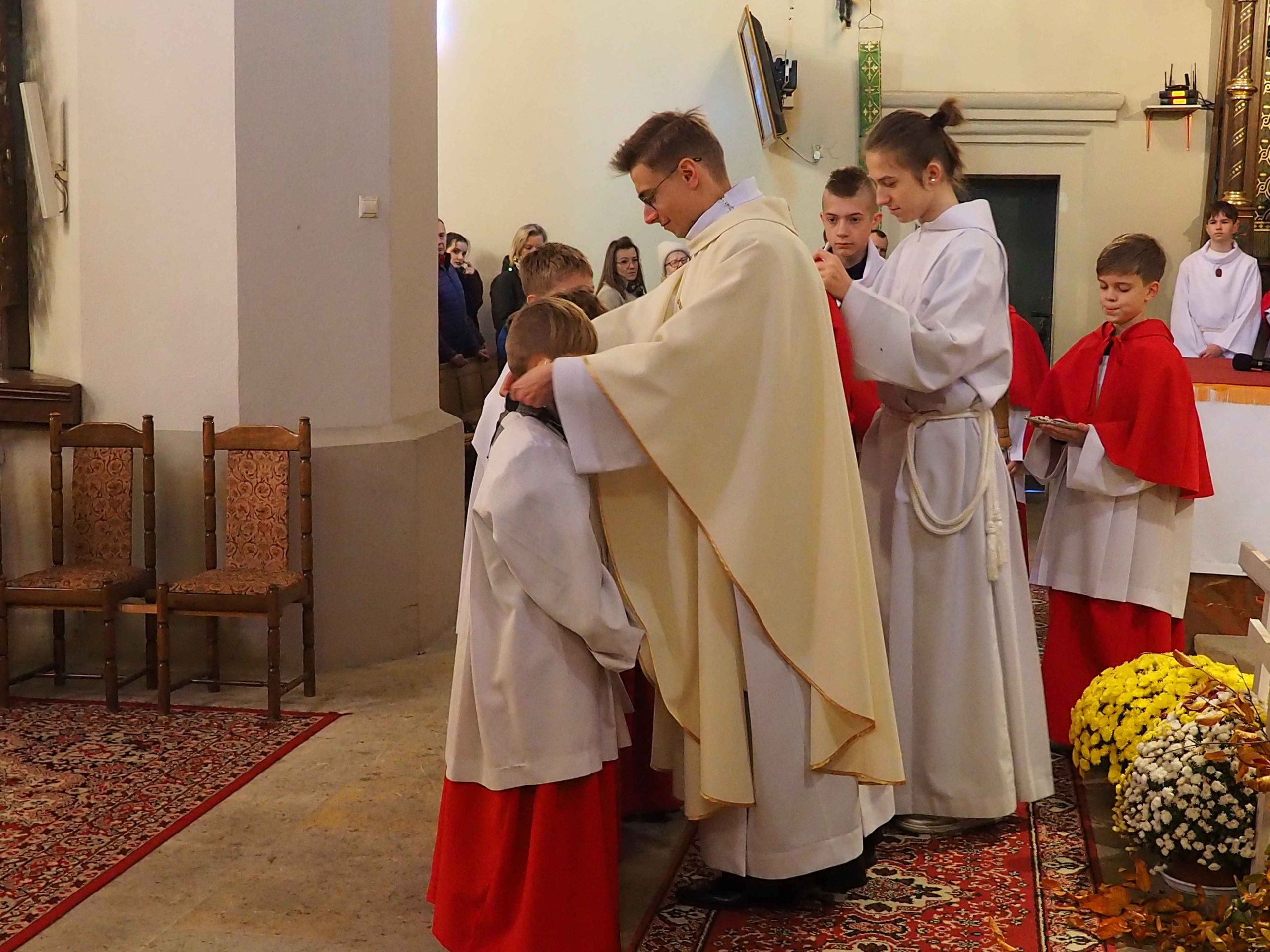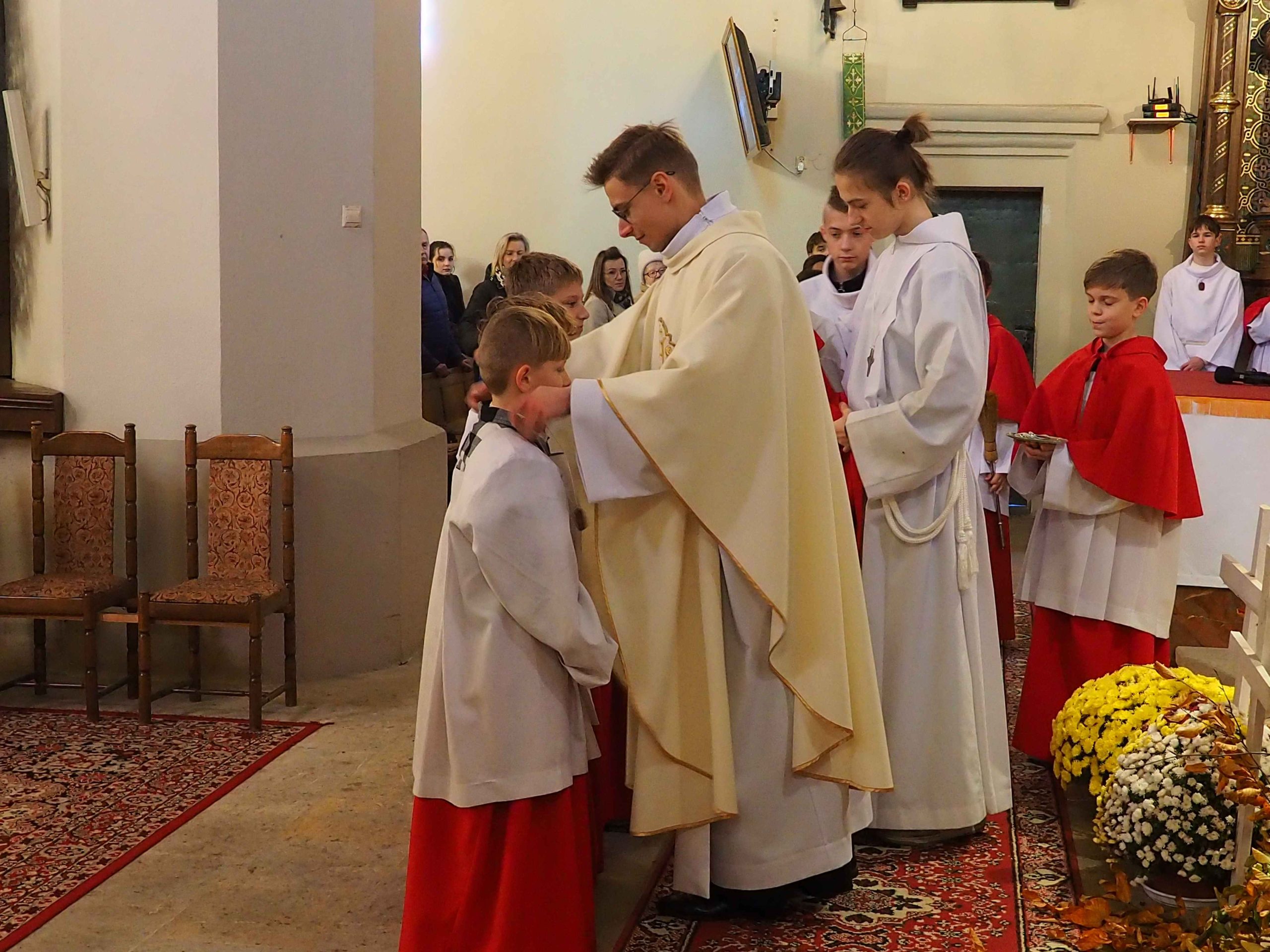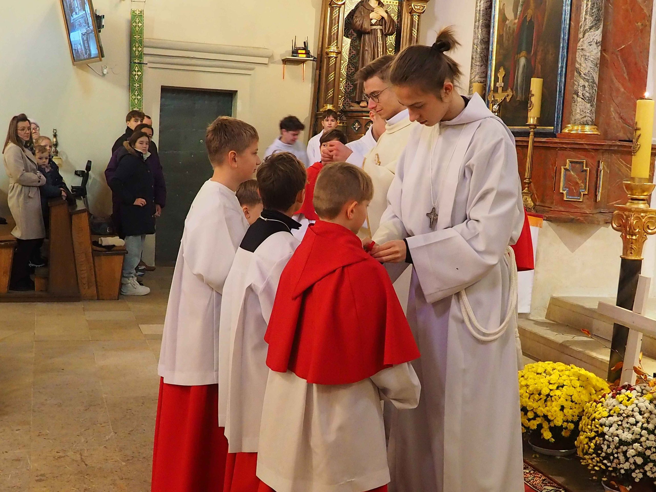 Liturgiczna Służba Ołtarza 23 listopada 2025 roku w uroczystość Jezusa Chrystusa, Króla Wszechświata przeżywała kolejną wielką radość! Na Mszyśw. o godz. 11:30 ksiądz Tomasz pobłogosławił 4 nowych ministrantów. Oto ich imiona: Igor, Oliwier, Adam i Gracjan. Bardzo mocno cieszymy się że jesteście! Była to okazja do wspólnego przeżywania święta wspólnoty służby liturgicznej, a także całej parafii.