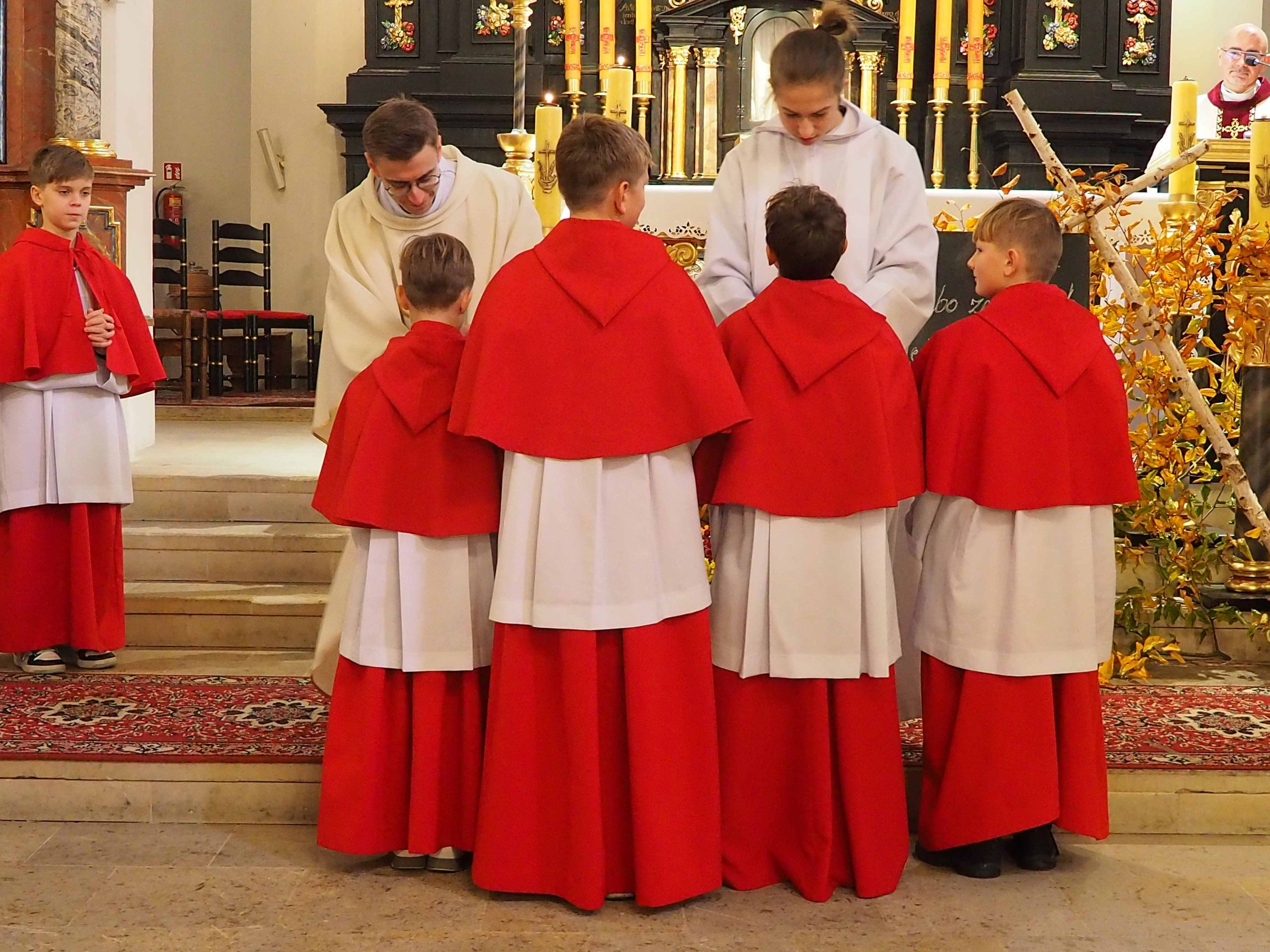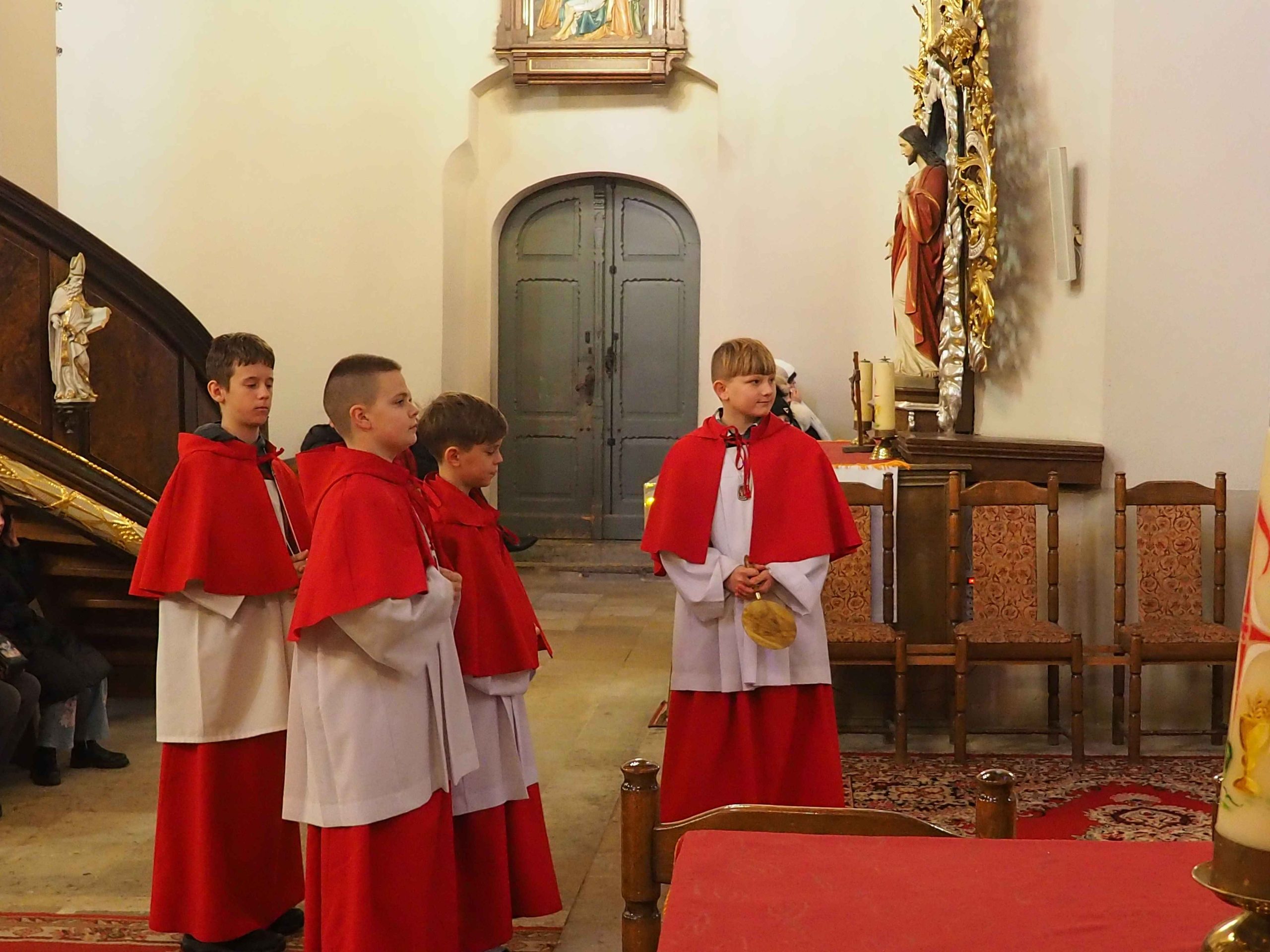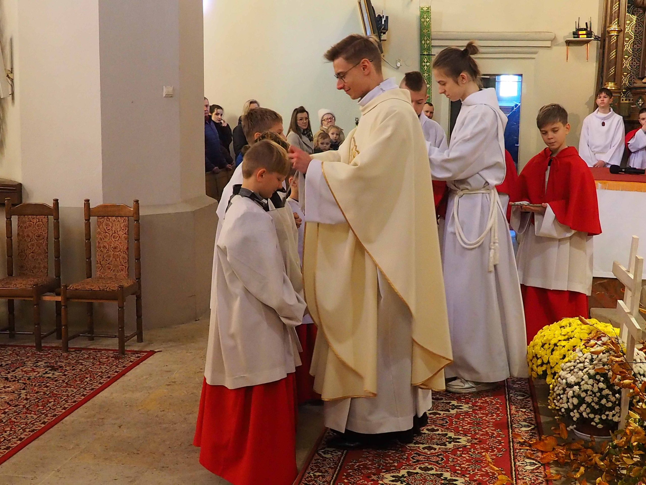 Liturgiczna Służba Ołtarza 23 listopada 2025 roku w uroczystość Jezusa Chrystusa, Króla Wszechświata przeżywała kolejną wielką radość! Na Mszyśw. o godz. 11:30 ksiądz Tomasz pobłogosławił 4 nowych ministrantów. Oto ich imiona: Igor, Oliwier, Adam i Gracjan. Bardzo mocno cieszymy się że jesteście! Była to okazja do wspólnego przeżywania święta wspólnoty służby liturgicznej, a także całej parafii.