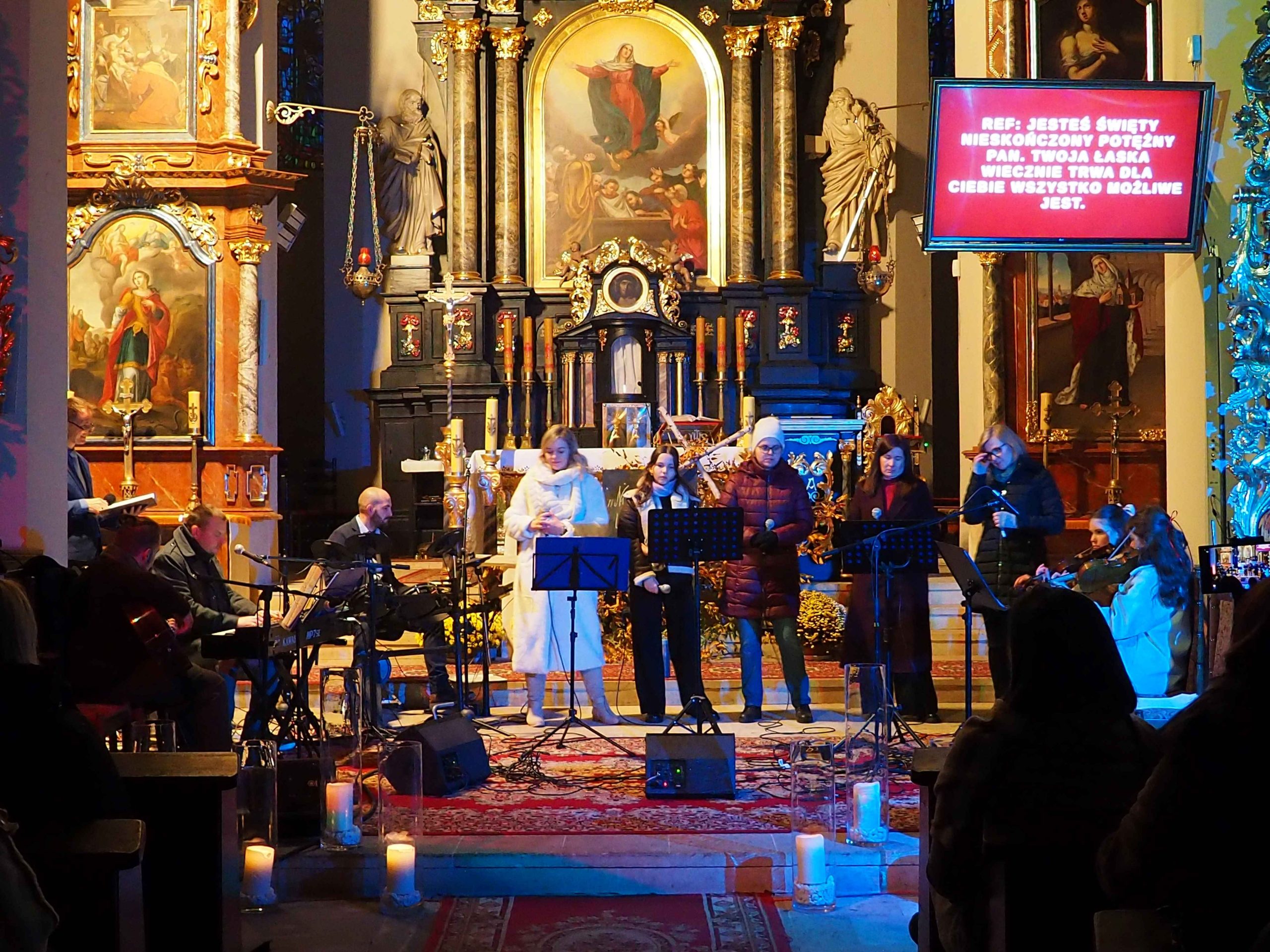 W niedzielę, 23 listopada 2025 roku o godz. 16:00 odbył się w kościele farnym KONCERT UWIELBIENIOWY „RAZEM Z MARYJA”. Wystąpił zespół pod kierunkiem organisty Marcina Bojskiego. Słowo wstępu wygłosił proboszcz ks. Dominik. Koncert wokalny przeplatany był rozważaniami.