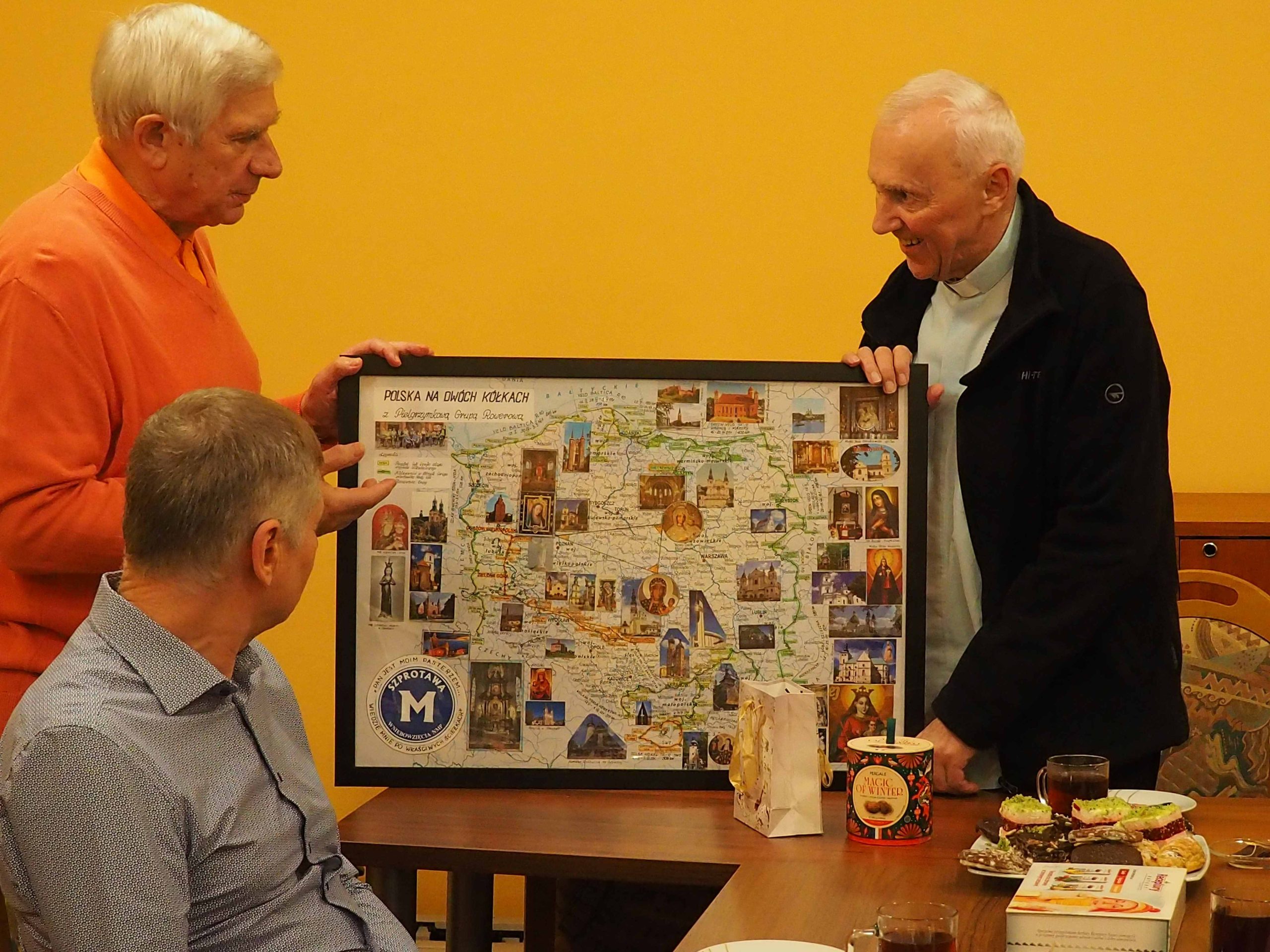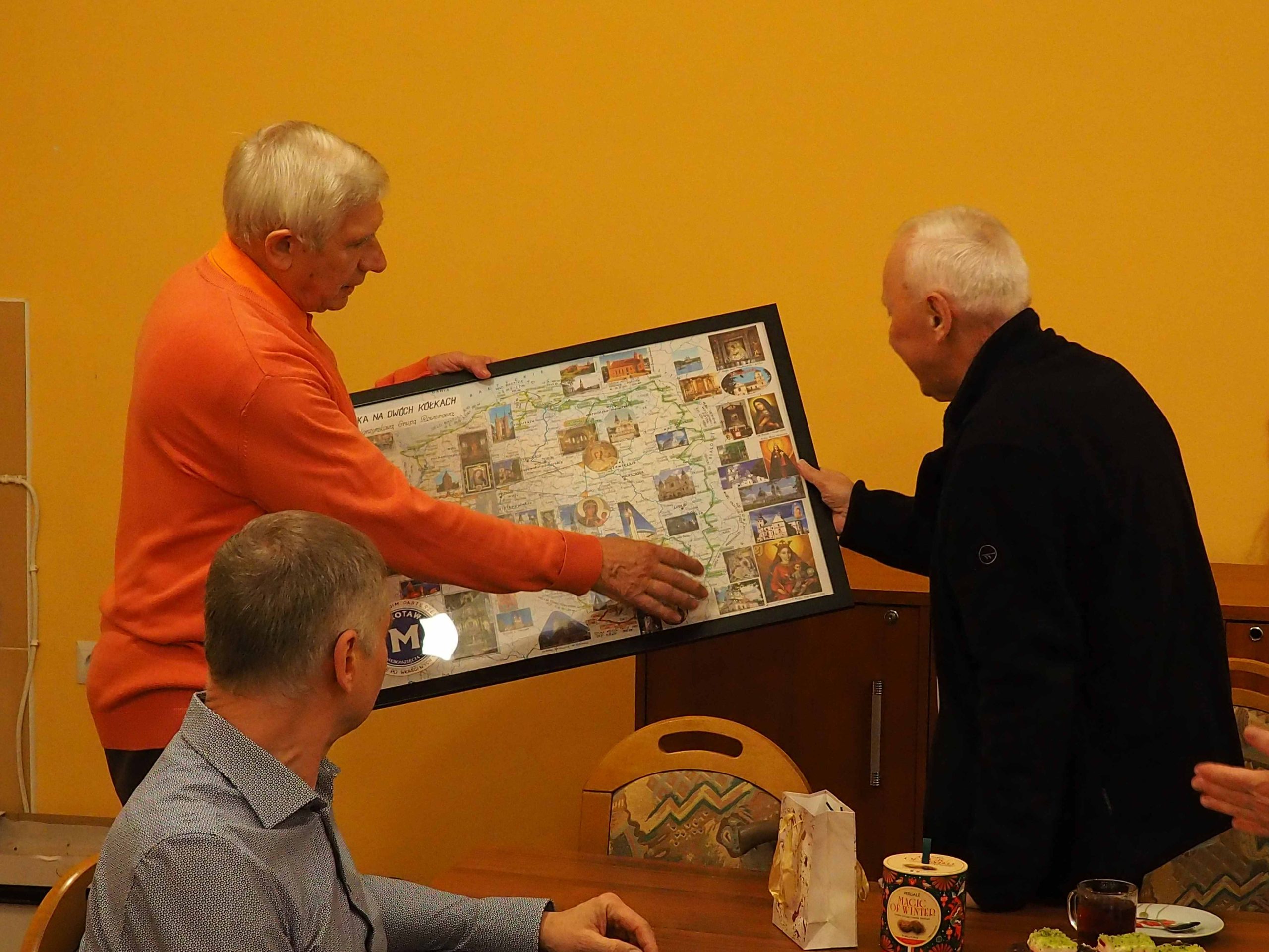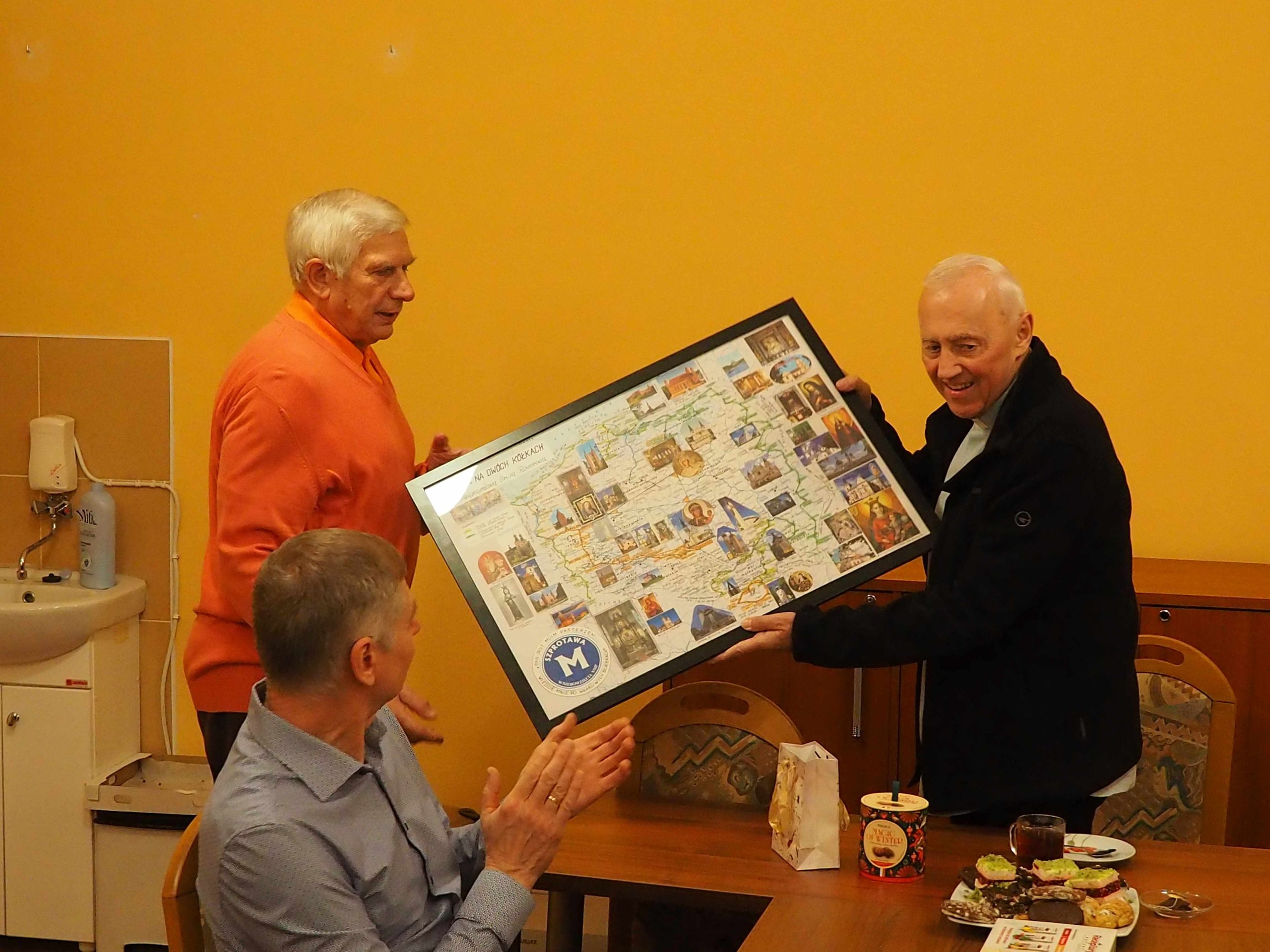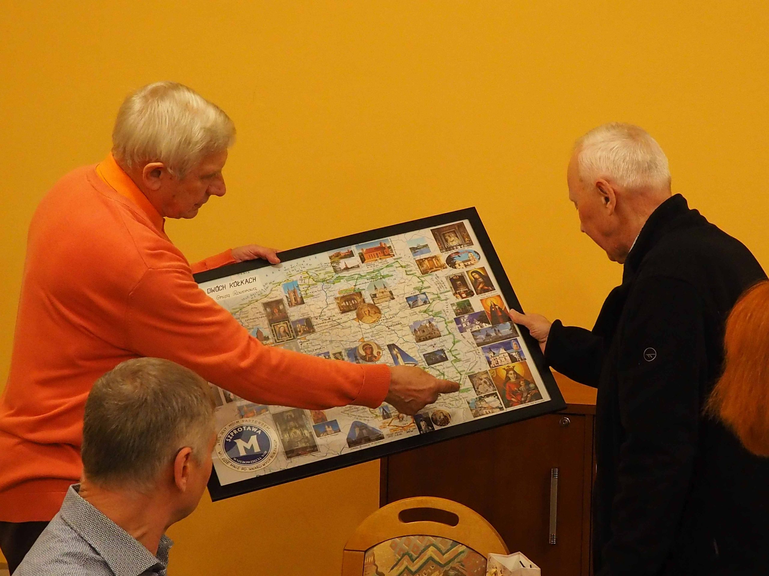 Otrzymaliśmy od Stanisława pamiątkowe mapy, od ks. Ryszarda „Słowo na każdy dzień” Ewangelie , a od Genowefy słodki świąteczny upominek. Wspomnień, anegdot i opowieści związanych z wyprawami było bardzo, bardzo wiele. Najważniejsze jest jednak to, że mamy jednak jeszcze plany na następne wspólne wyprawy. Bo, jak powiedział Stanisław na mapie Polski jest jeszcze wiele miejsc, do których jeszcze powinniśmy pojechać.