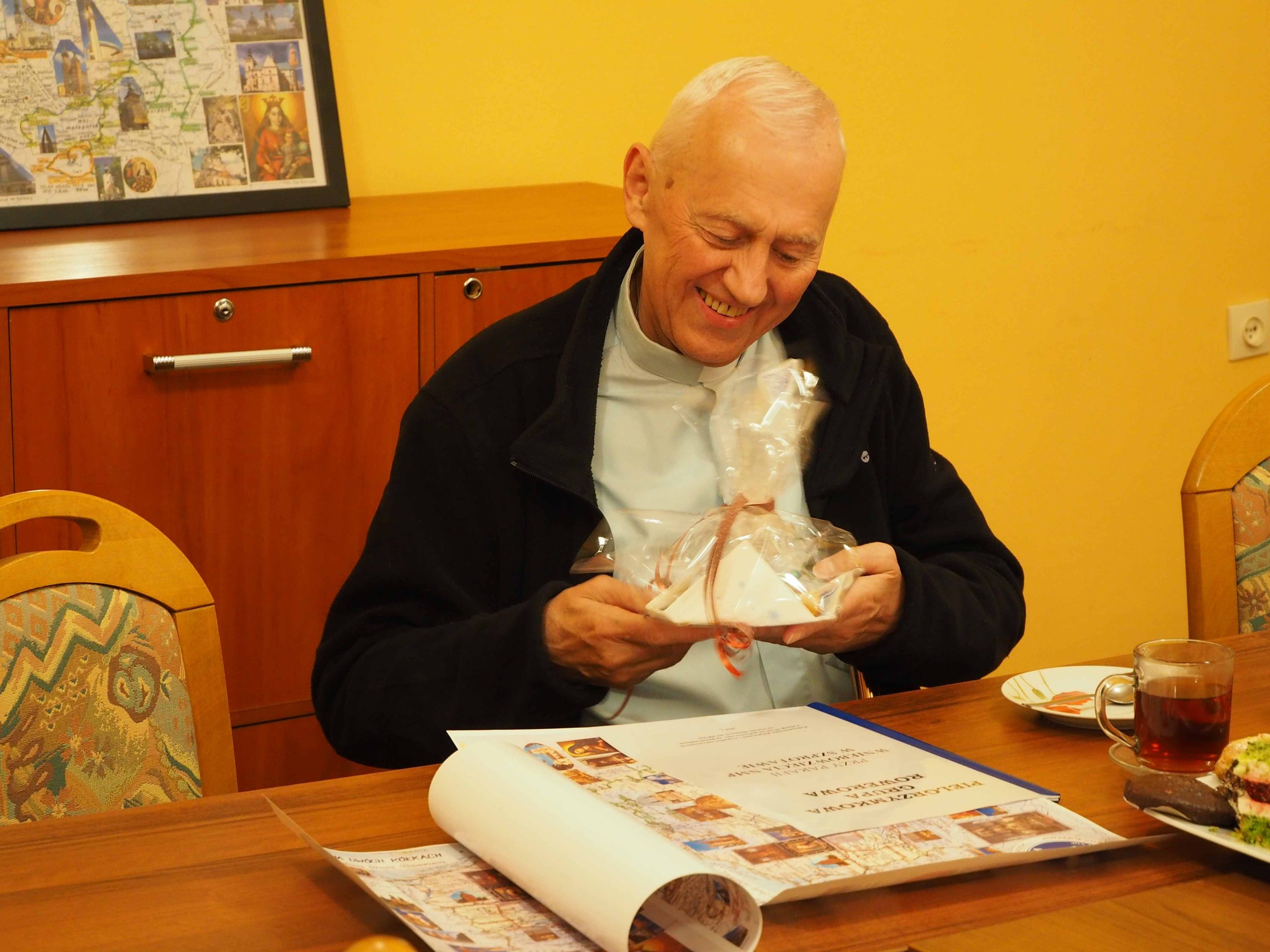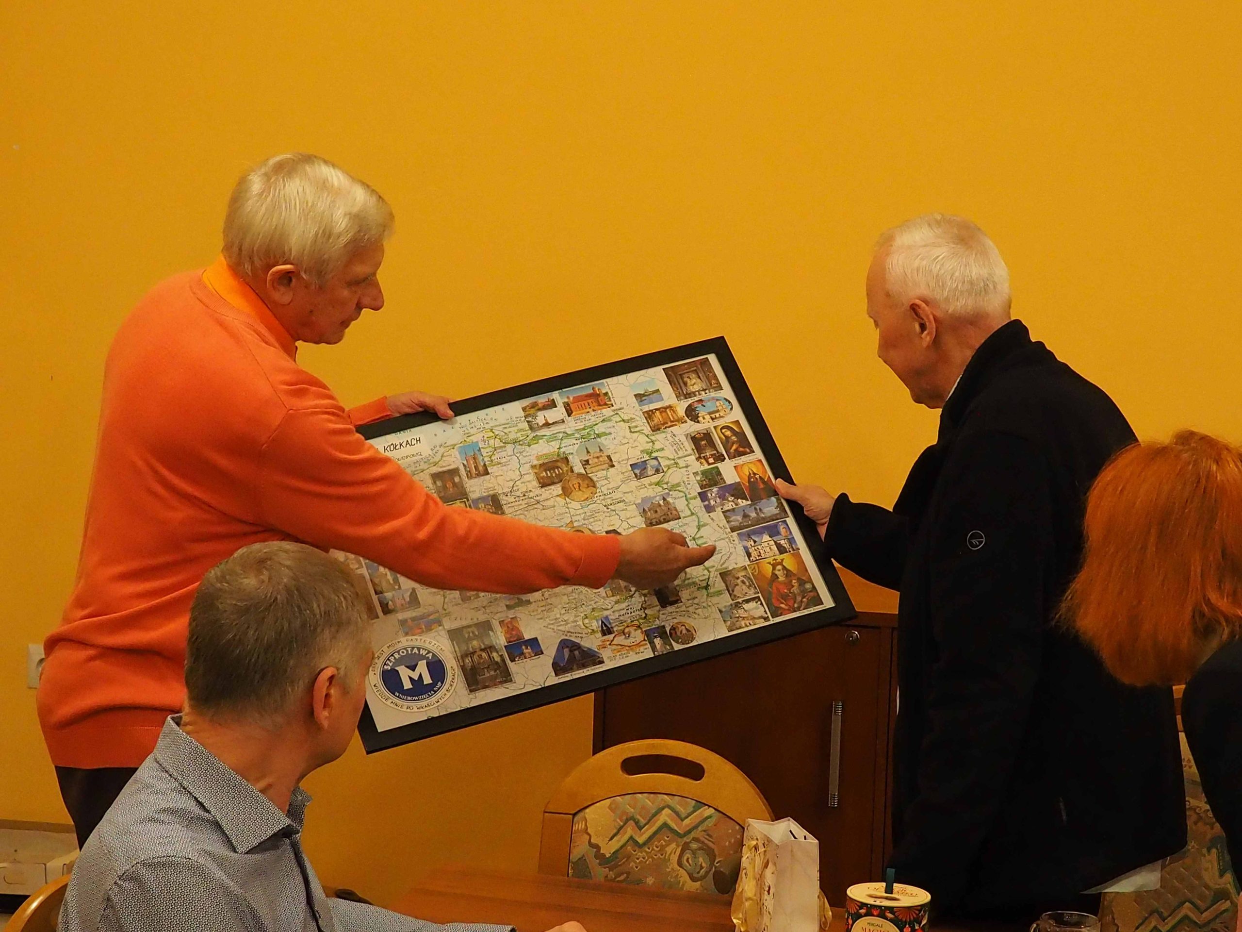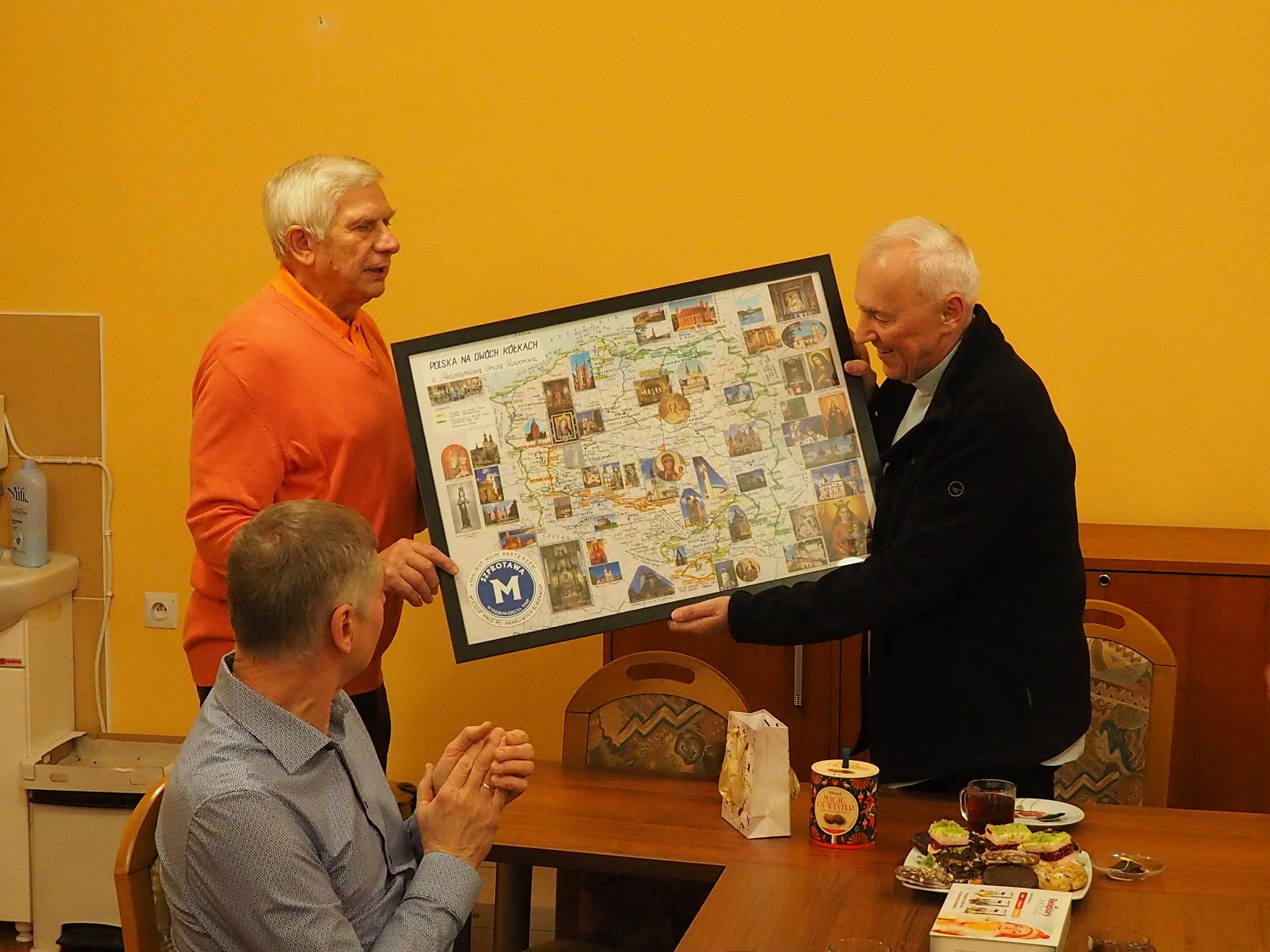 Otrzymaliśmy od Stanisława pamiątkowe mapy, od ks. Ryszarda „Słowo na każdy dzień” Ewangelie , a od Genowefy słodki świąteczny upominek. Wspomnień, anegdot i opowieści związanych z wyprawami było bardzo, bardzo wiele. Najważniejsze jest jednak to, że mamy jednak jeszcze plany na następne wspólne wyprawy. Bo, jak powiedział Stanisław na mapie Polski jest jeszcze wiele miejsc, do których jeszcze powinniśmy pojechać.