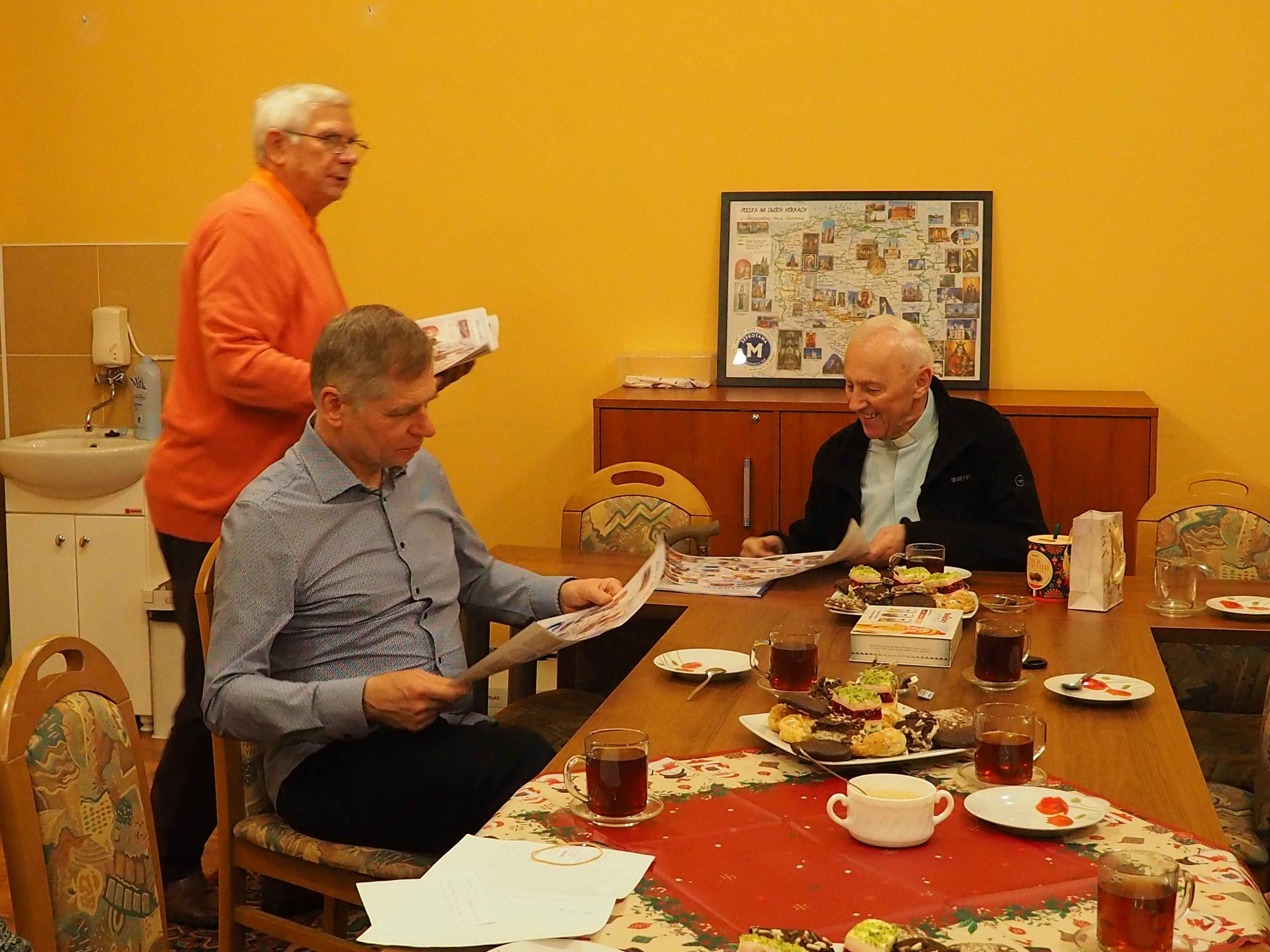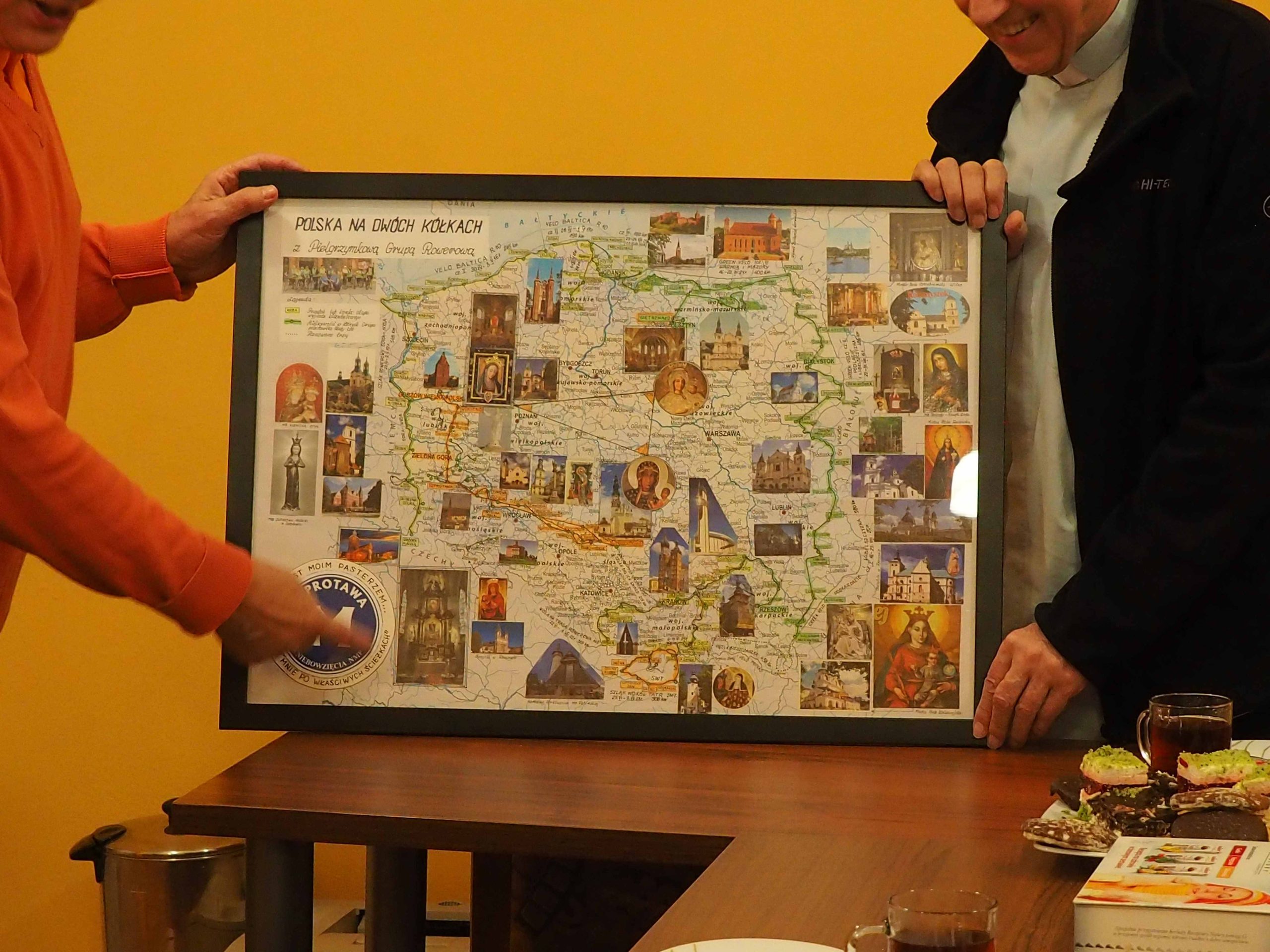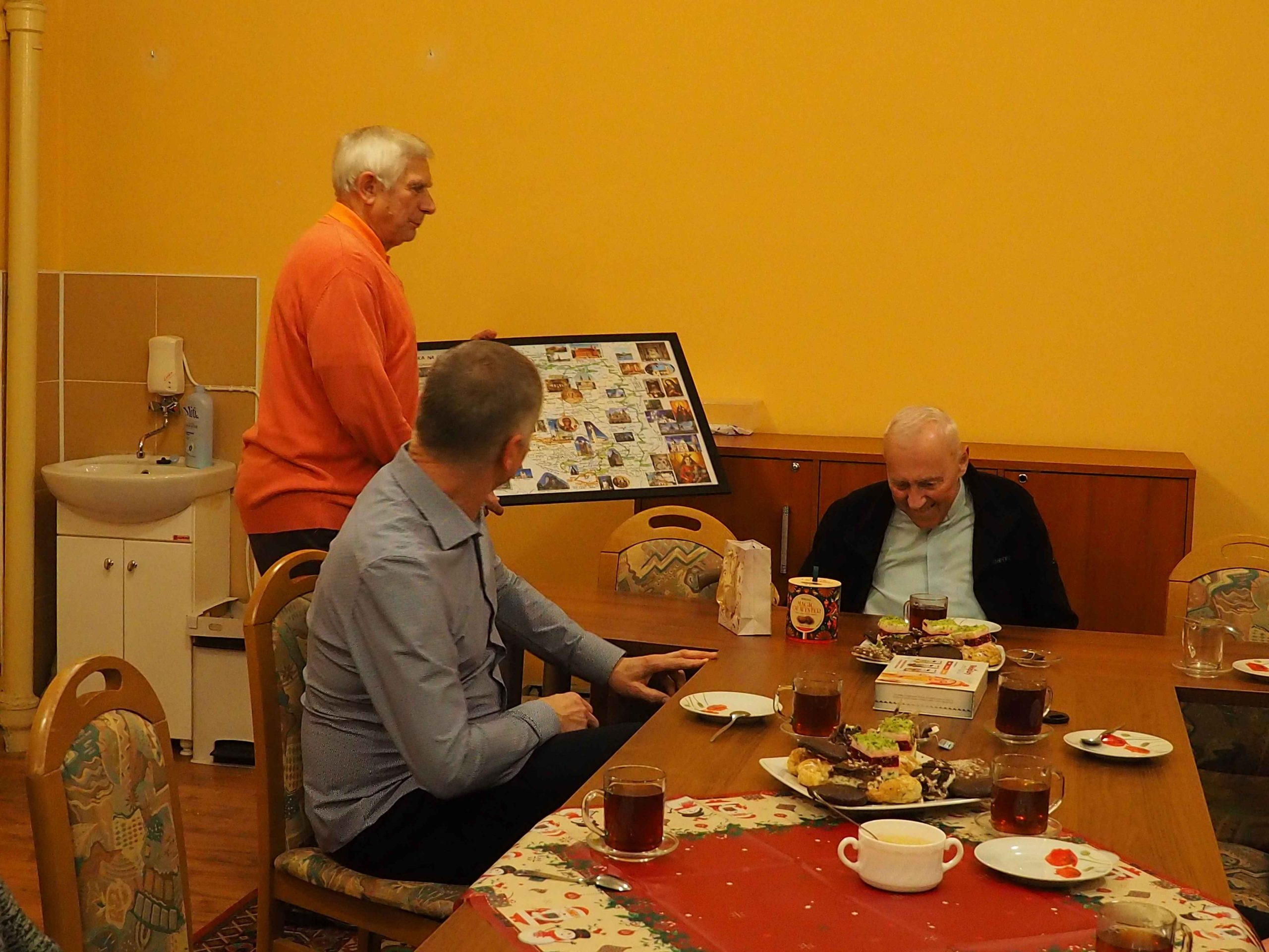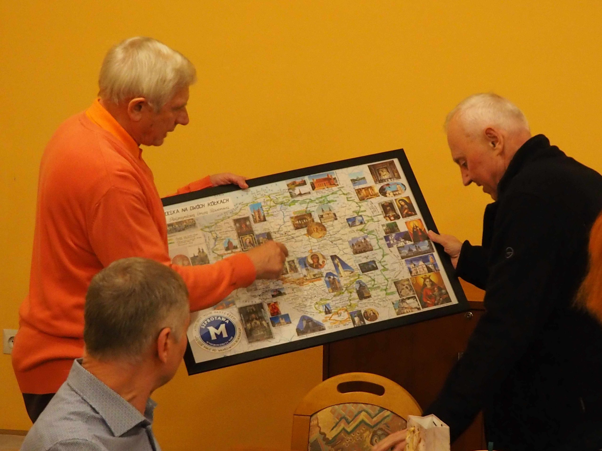 Otrzymaliśmy od Stanisława pamiątkowe mapy, od ks. Ryszarda „Słowo na każdy dzień” Ewangelie , a od Genowefy słodki świąteczny upominek. Wspomnień, anegdot i opowieści związanych z wyprawami było bardzo, bardzo wiele. Najważniejsze jest jednak to, że mamy jednak jeszcze plany na następne wspólne wyprawy. Bo, jak powiedział Stanisław na mapie Polski jest jeszcze wiele miejsc, do których jeszcze powinniśmy pojechać.