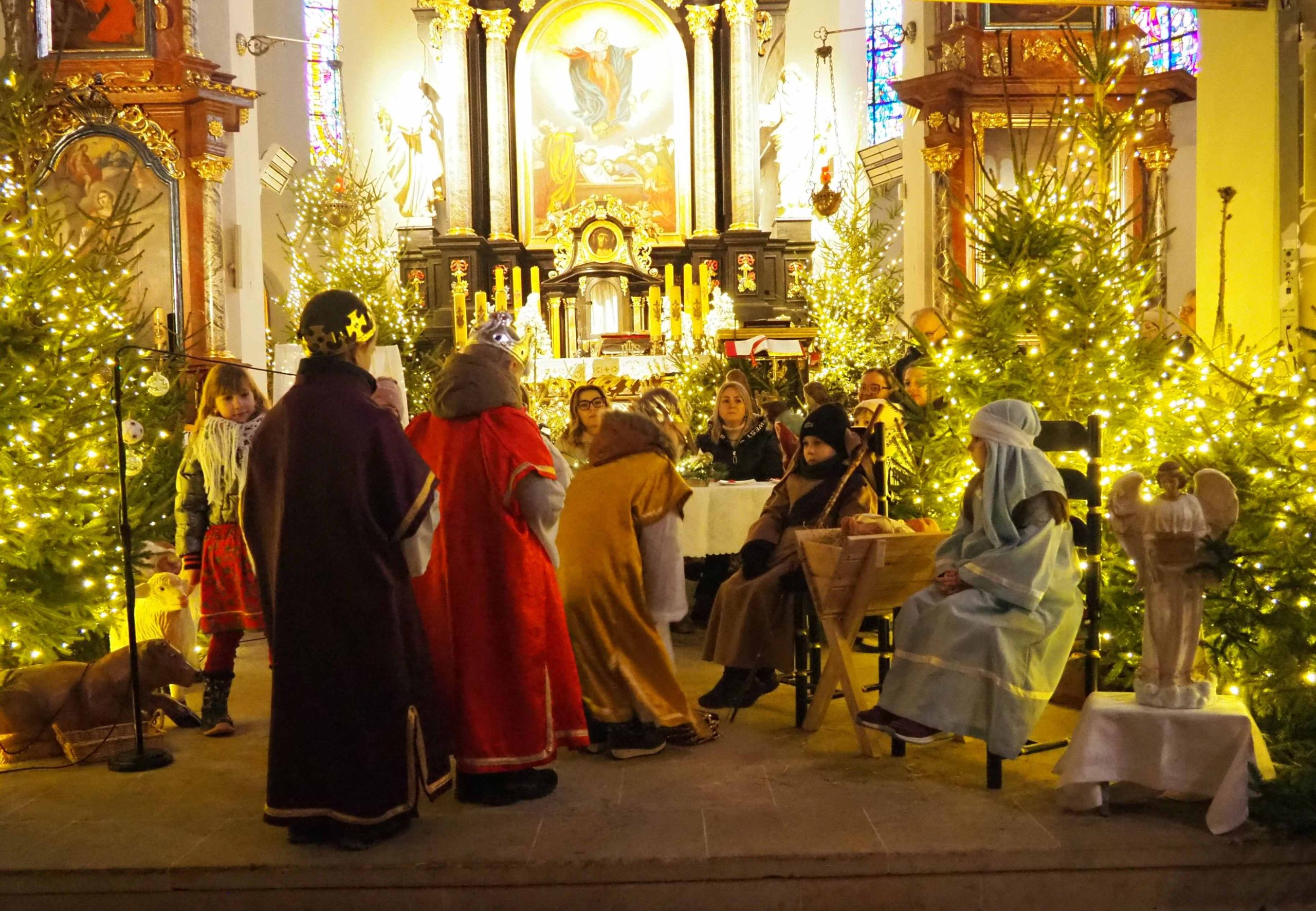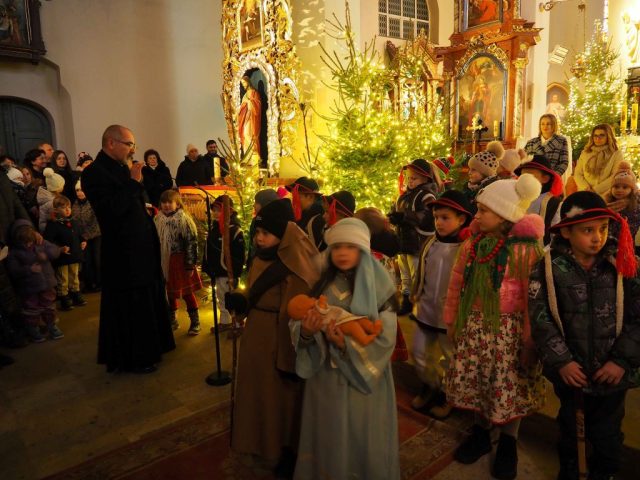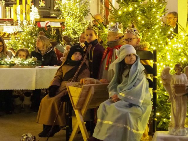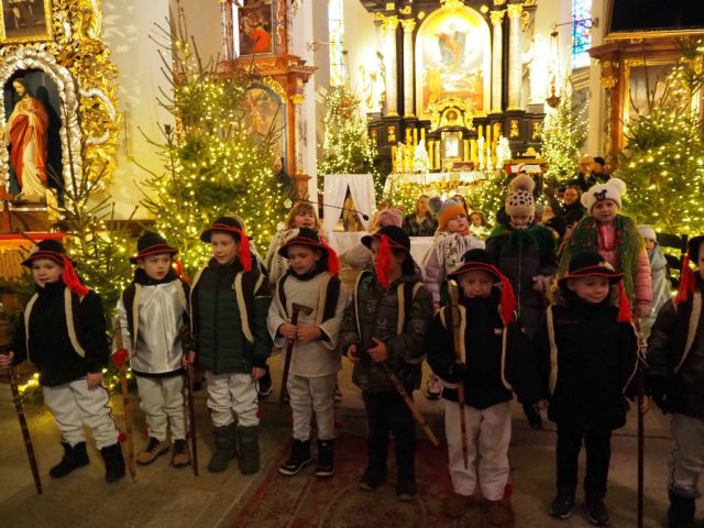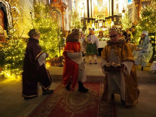 6 stycznia po Mszy Św. o godz. 12:00 sześciolatki wraz ze swoimi rodzicami przedstawiły Jasełka w kościele farnym. Grupa „Stokrotek” z Przedszkola „Pod Dębami” przypomniała nam historię narodzenia Jezusa ukazując je śpiewem, słowem i tańcem. Wierni, którzy je oglądali nie kryli podziwu, wzruszenia i radości. Na zakończenie ks. Proboszcz złożył podziękowania wręczając wszystkim małym wykonawcom słodkości a do rodziców, opiekunów, nauczycieli i dyrektor przedszkola skierował słowa podziękowania.
