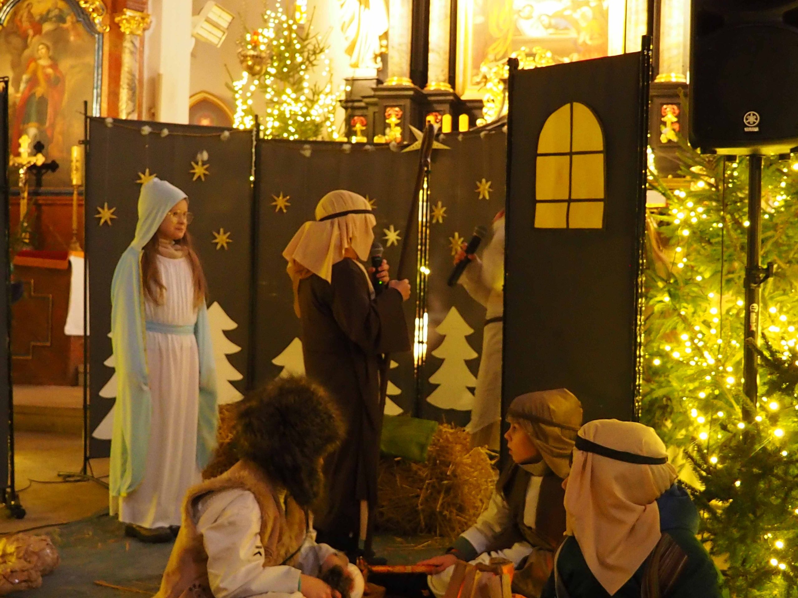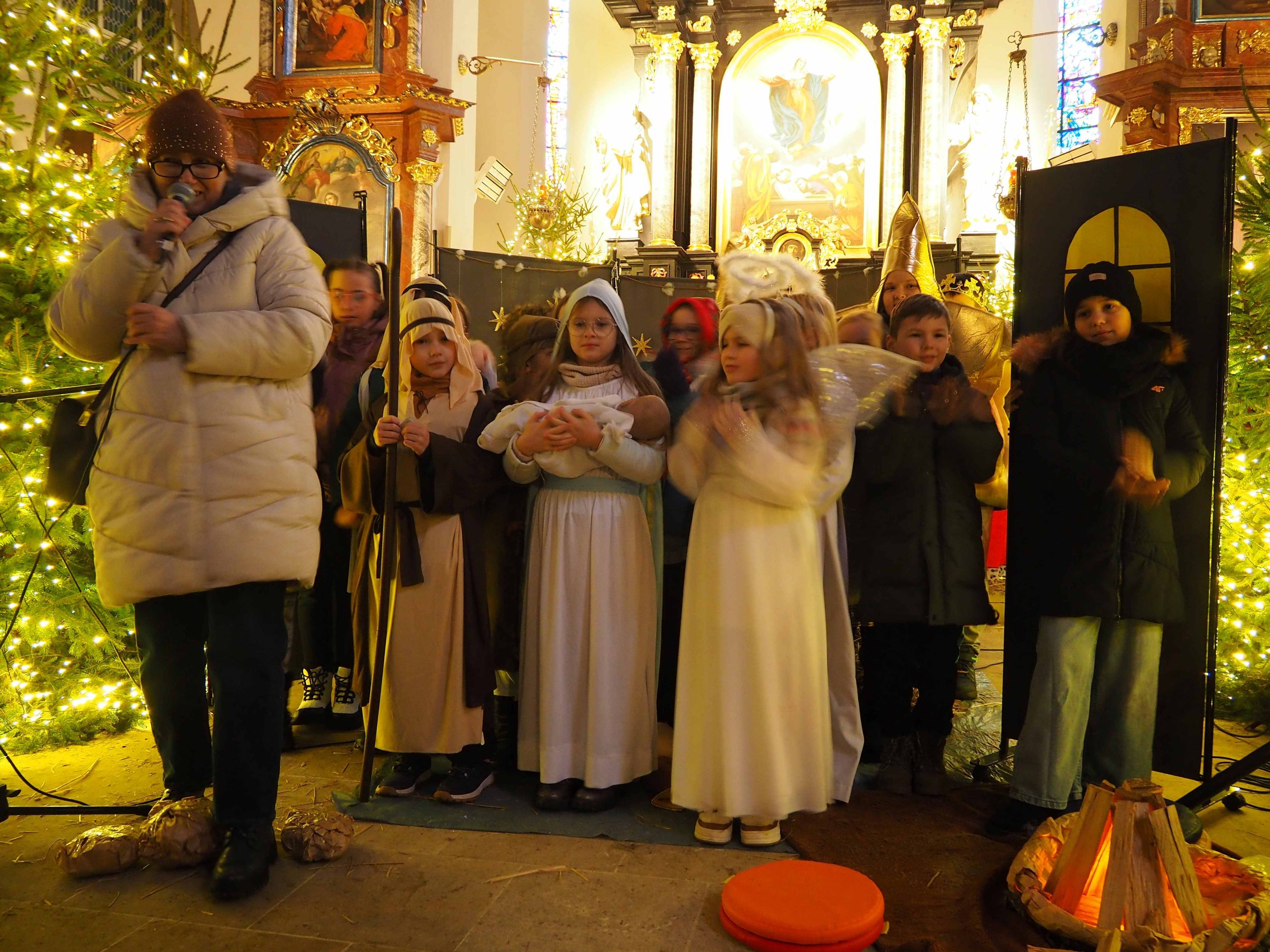 W niedzielę 11 stycznia 2026 roku po Mszy Św. o godz. 12:00 w kościele farnym mogliśmy uczestniczyć w „Jasełkach”. Przedstawienie odbyło się w wykonaniu uczniów klas I, II i III Społecznej Szkoły Podstawowej w Szprotawie. Na zakończenie Jasełek życzenia na Nowy 2026 rok złożyła dyrektor placówki Krystyna Kopaniecka. Proboszcz, gospodarz miejsca, ks. Dominik Kamiński w ramach podziękowania za występ obdarował wykonawców słodkim upominkiem.