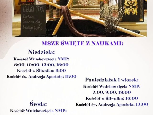 Nauki rekolekcyjne głoszone były w kościele parafialnym WNMP, w kościele w Śliwniku i w kościele Św. Andrzeja Apostoła (szczegóły na plakacie).