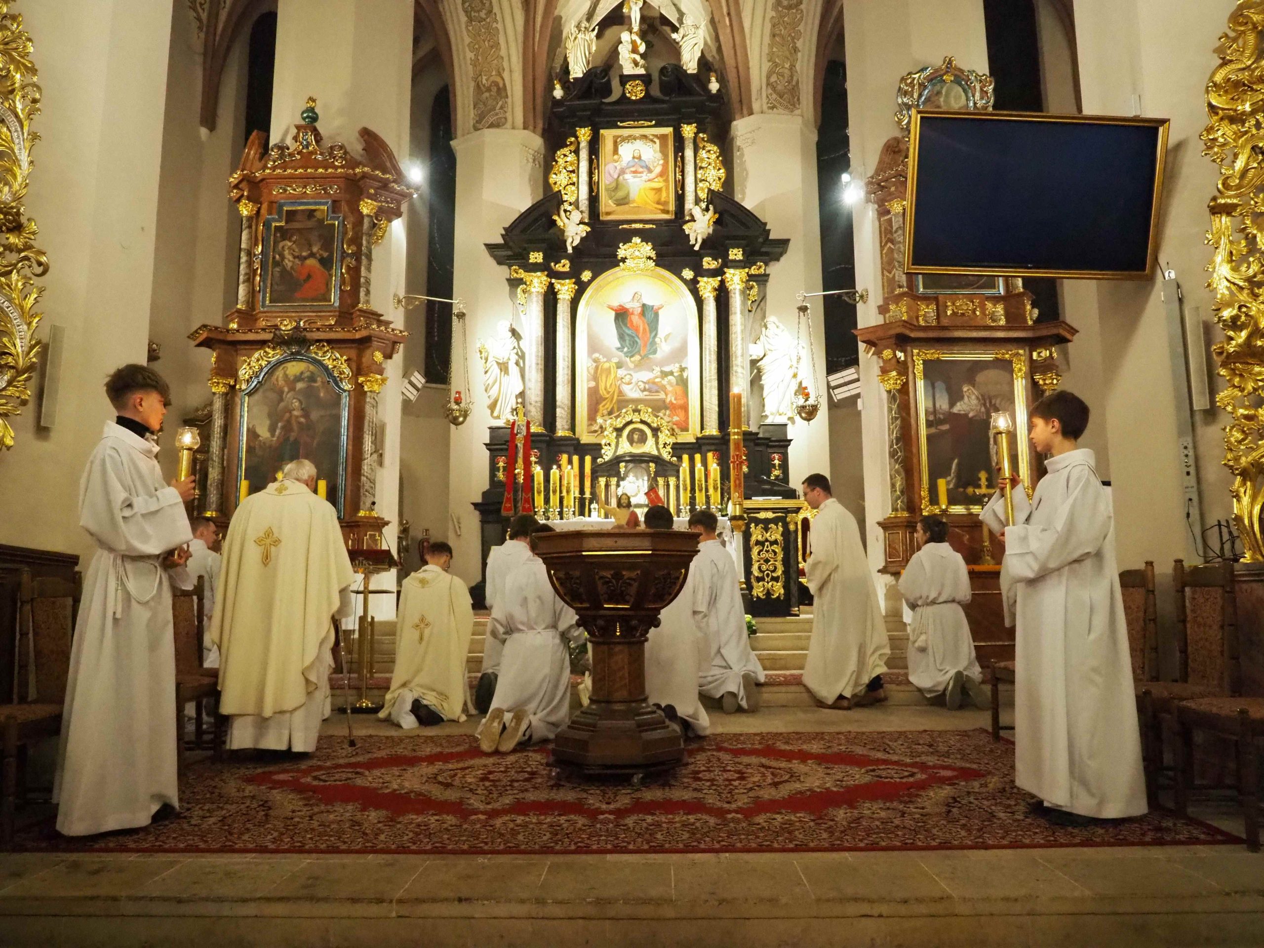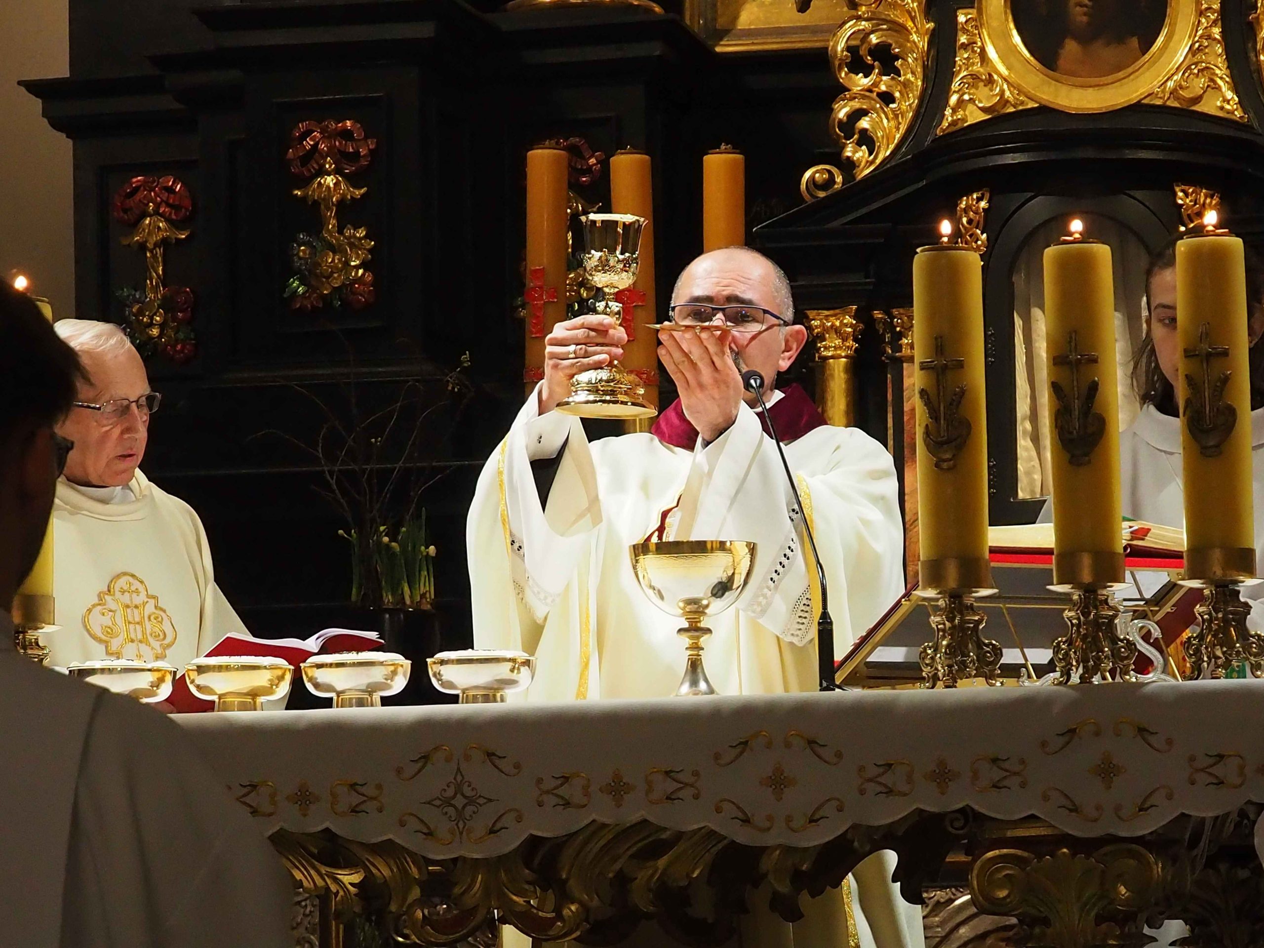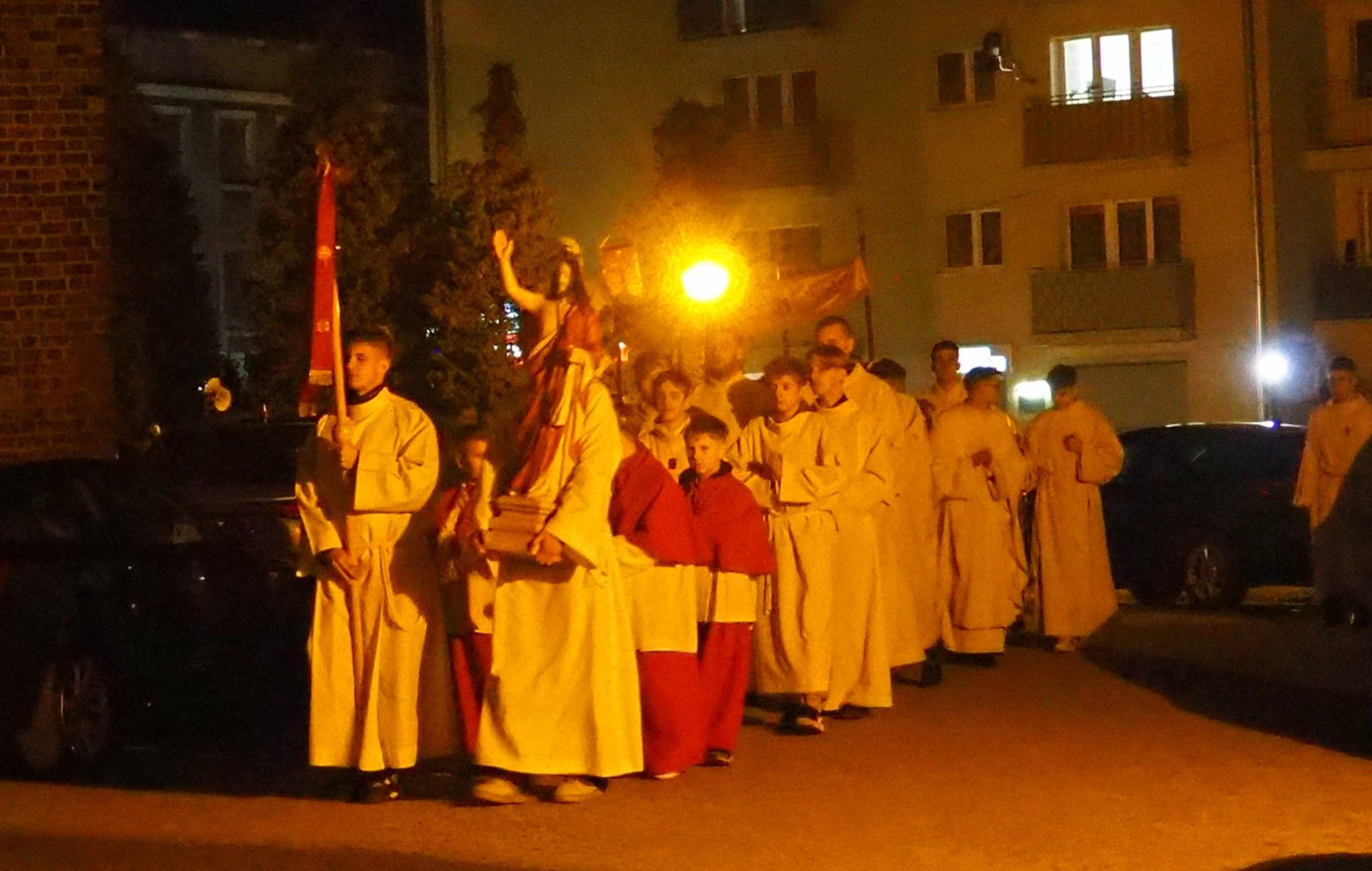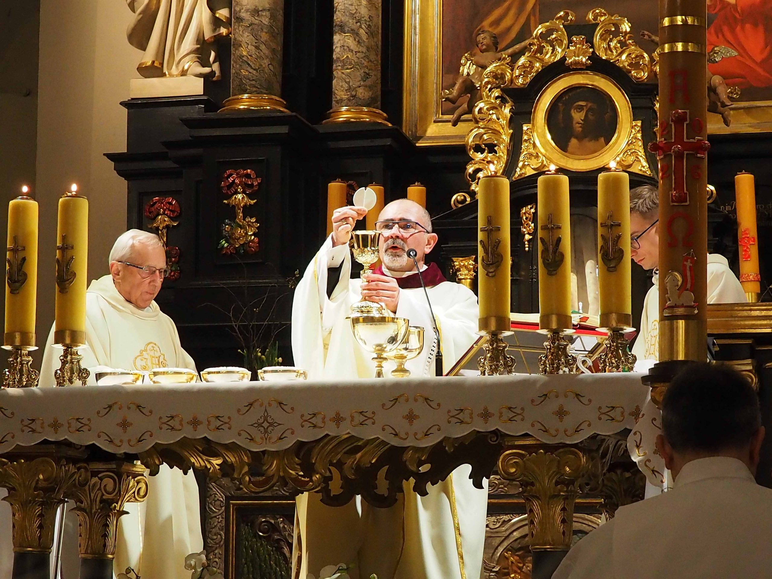 4 kwietnia 2026 roku o godz. 21:00 rozpoczęła się LITURGIA PASCHALNA oznajmiająca nam Zmartwychwstanie Chrystusa została odprawiona kościele WNMP i św. Andrzeja Apostoła. Liturgia rozpoczęła się przed kościołem gdzie został poświęcony ogień. Liturgię w kościele WNMP koncelebrowali: ks. kan. Dominik, ks. Prałat Ryszard i ks. Tomasz. Głównym celebransem był ks. Dominik. W kościele św. Andrzeja Apostoła celebrował ks. Krzysztof.