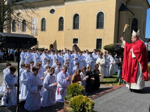 Podczas pielgrzymki biskup Adrian Put udzielił między innymi naszym siedmiu ministrantom uroczyste błogosławieństwo do pełnienia posługi lektora. Oto imiona nowych lektorów: Konrad, Nikodem, Jakub, Kornel, Paweł, Hubert i Błażej.