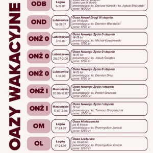 Rozpoczęły się zapisy na oazy wakacyjne dla dzieci i młodzieży organizowane przez Ruch Światło-Życie Diecezji Zielonogórsko-Gorzowskiej. Zapraszamy dzieci i młodzież Więcej informacji u ks. Tomasza oraz: https://lubuskaoaza.pl/oazy-wakacyjne-dla-dzieci-i…/