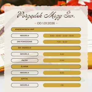 W związku ze zbliżającym się rokiem 2026 przekazujemy garść ważnych informacji: 1. Od nowego roku kalendarzowego w naszych parafiach będzie obowiązywał nowy porządek Mszy Świętych