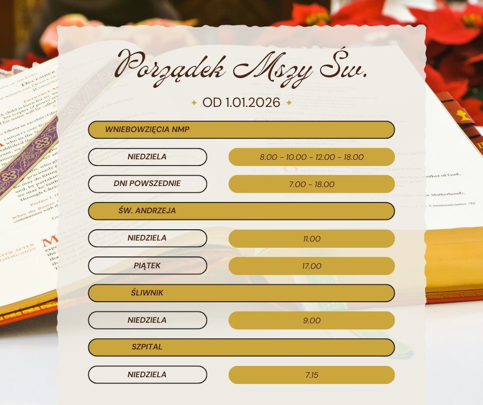 Program Peregrynacji Figury św. Michała Archanioła Szprotawa, 16-18 listopada 2025 roku Niedziela, 16 listopada 7:00, 8:30, 11:30, 18:00
