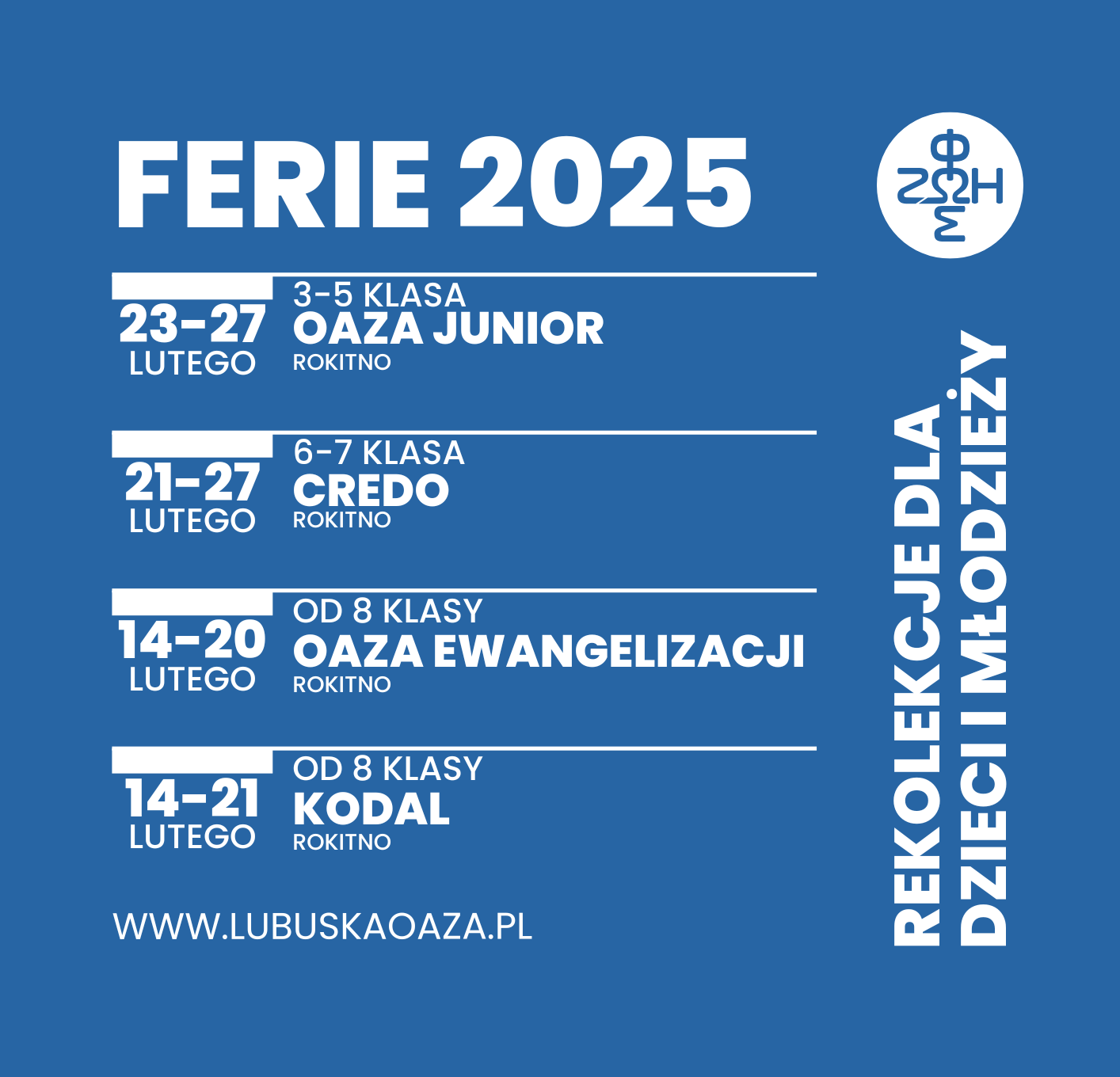 Zapraszamy dzieci młodzież do udziału w rekolekcjach organizowanych w ferie zimowe przez Ruch Światło-Życie naszej diecezji. Kurs Oazowy