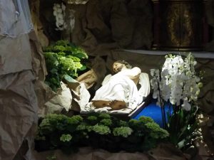 CZUWANIE PRZY GROBIE PAŃSKIM W KOSCIELE WNMP – w godzinach od 7:00 do 16:00 i od 18:00 do 21:00, zakończona Liturgią Wigilii Paschalnej. CZUWANIE